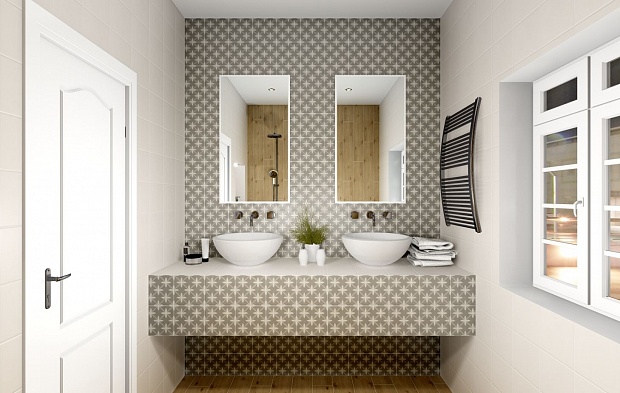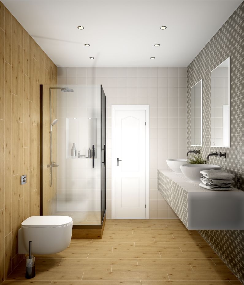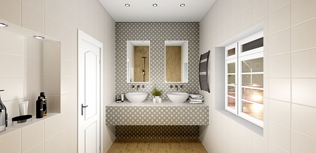 Совмещённый санузел в стиле Современный в белом цвете