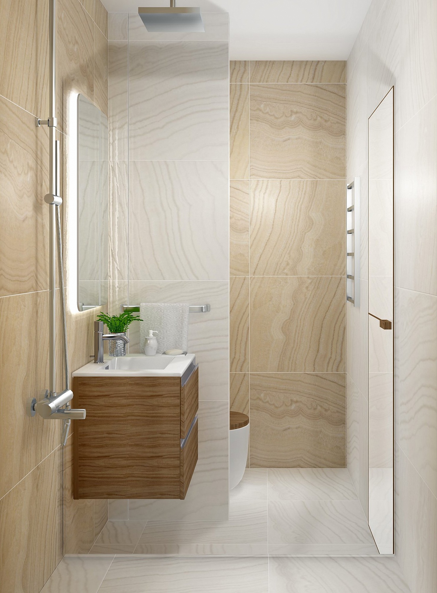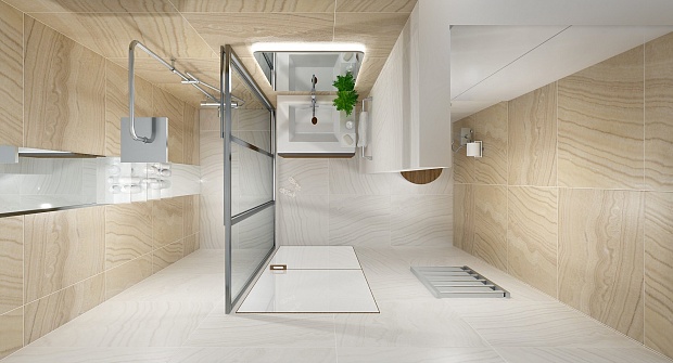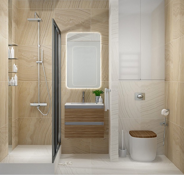 Совмещённый санузел в стиле Современный в бежевом цвете
