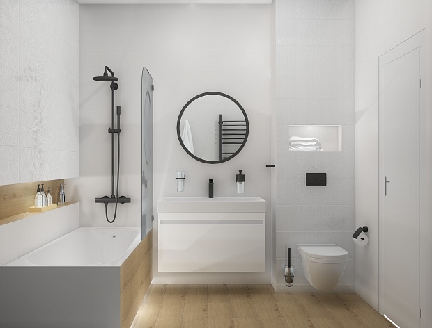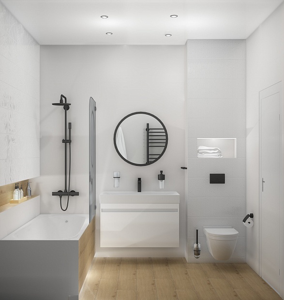 Совмещённый санузел в стиле Современный в белом цвете