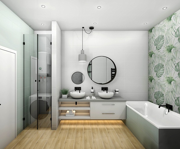 Совмещённый санузел в стиле Арт-деко в белом цвете