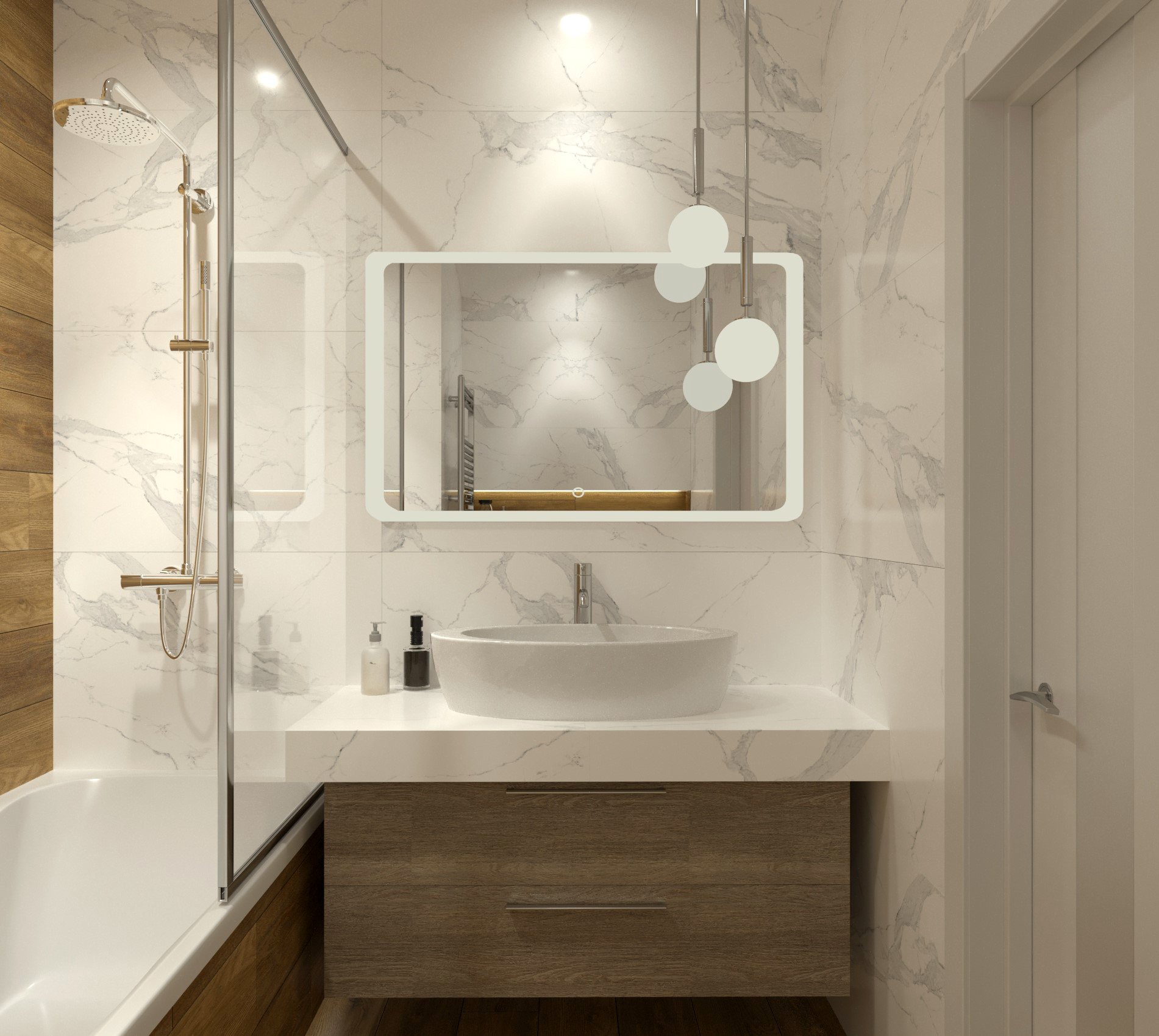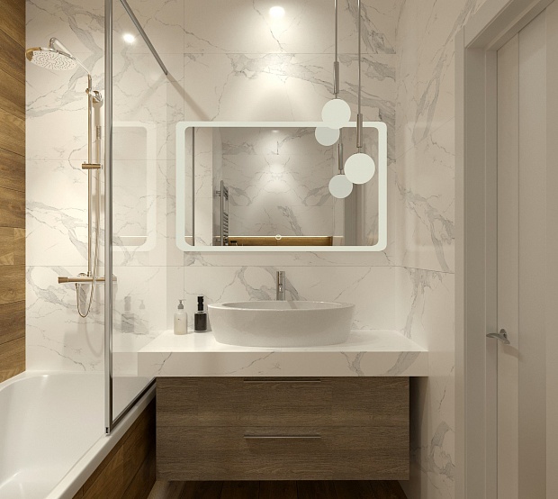 Совмещённый санузел в стиле Классика в белом цвете