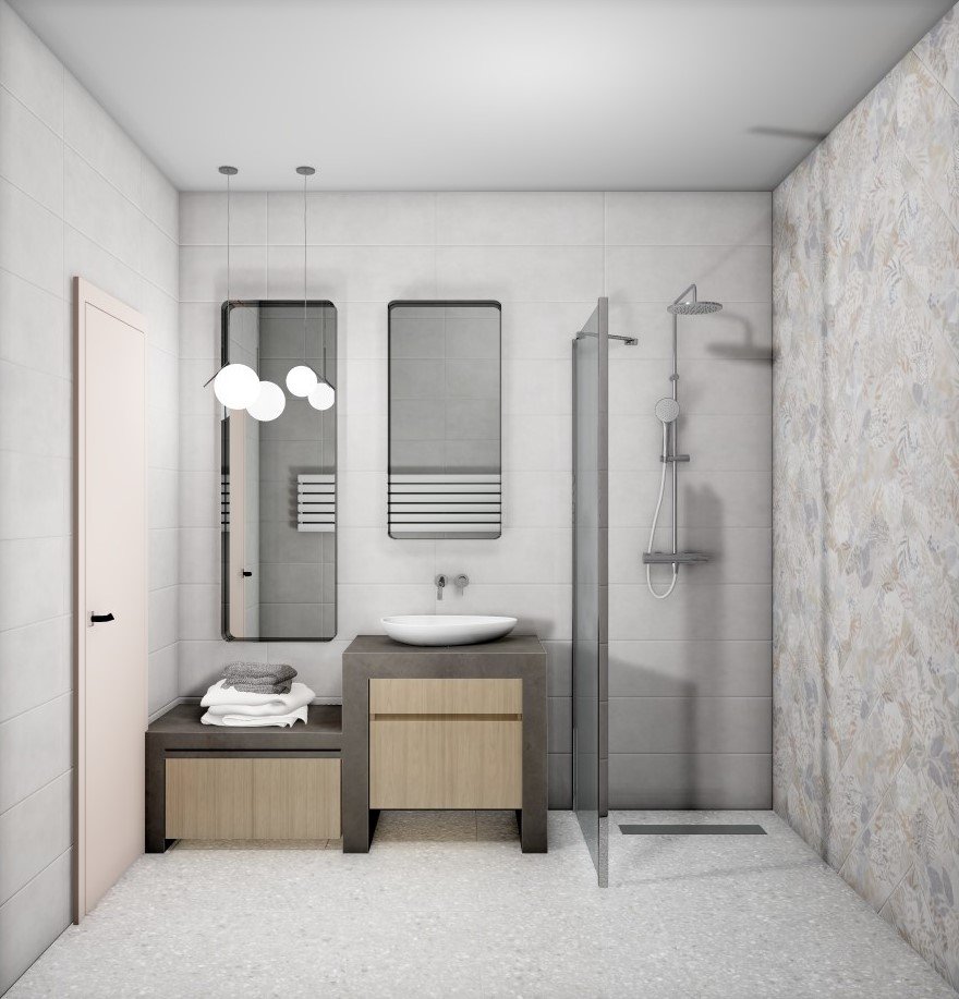 Ванная в стиле Минимализм в розовым цвете