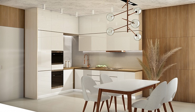 Кухня в стиле Современный в бежевом цвете