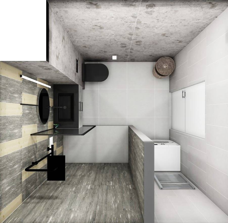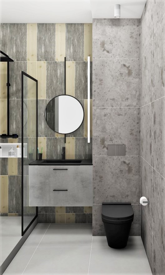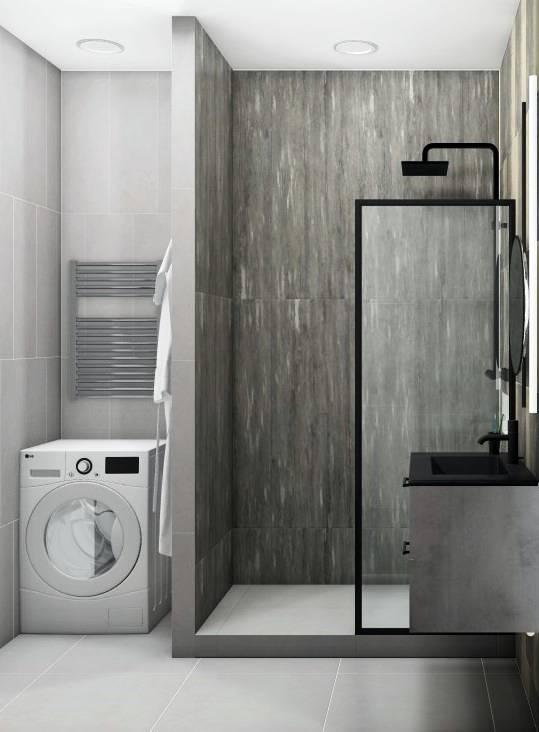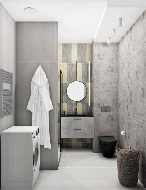 Совмещённый санузел в стиле Минимализм в сером цвете