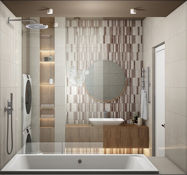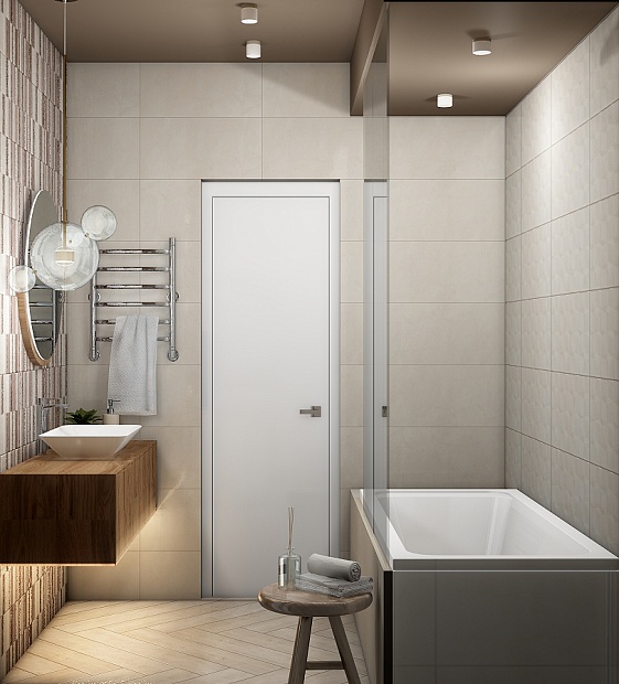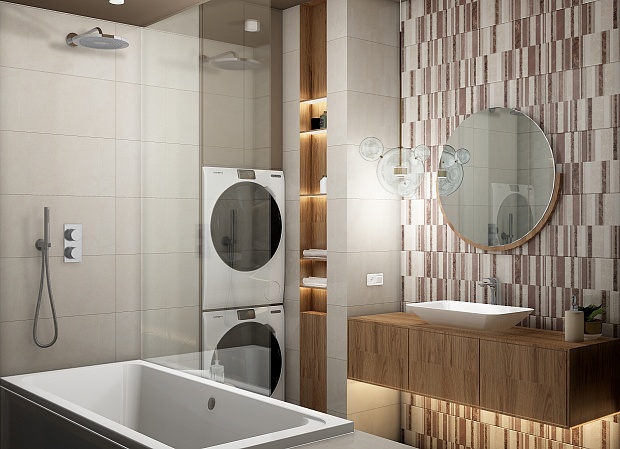 Совмещённый санузел в стиле Неоклассика в бежевом цвете