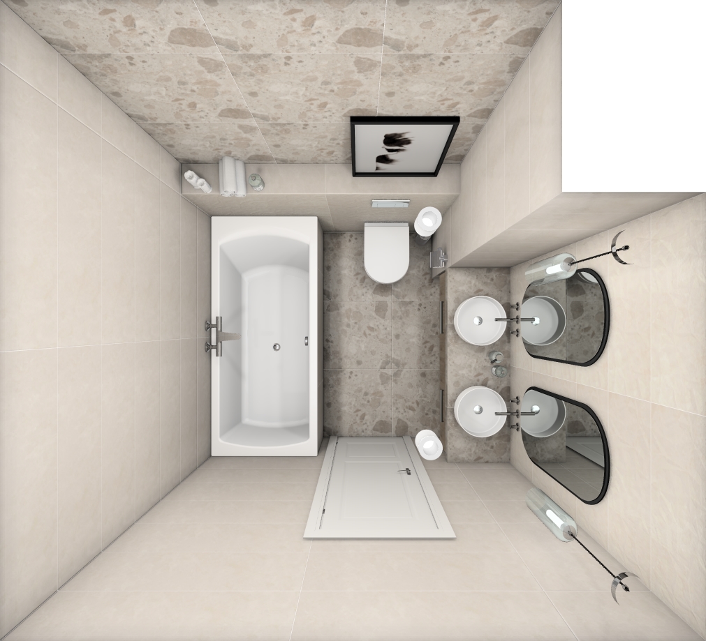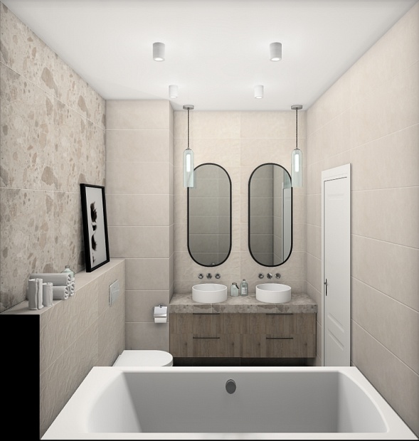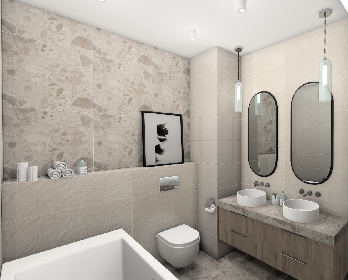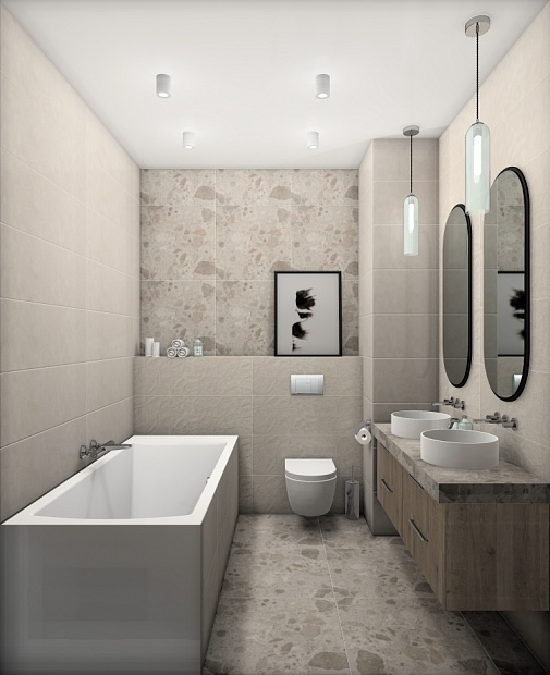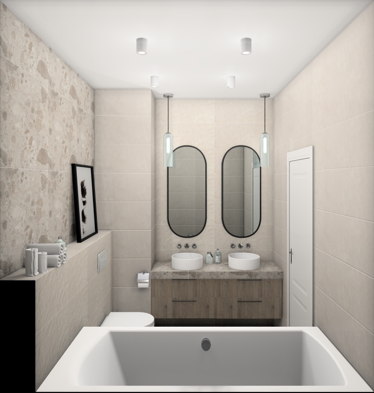 Совмещённый санузел в стиле Минимализм в бежевом цвете