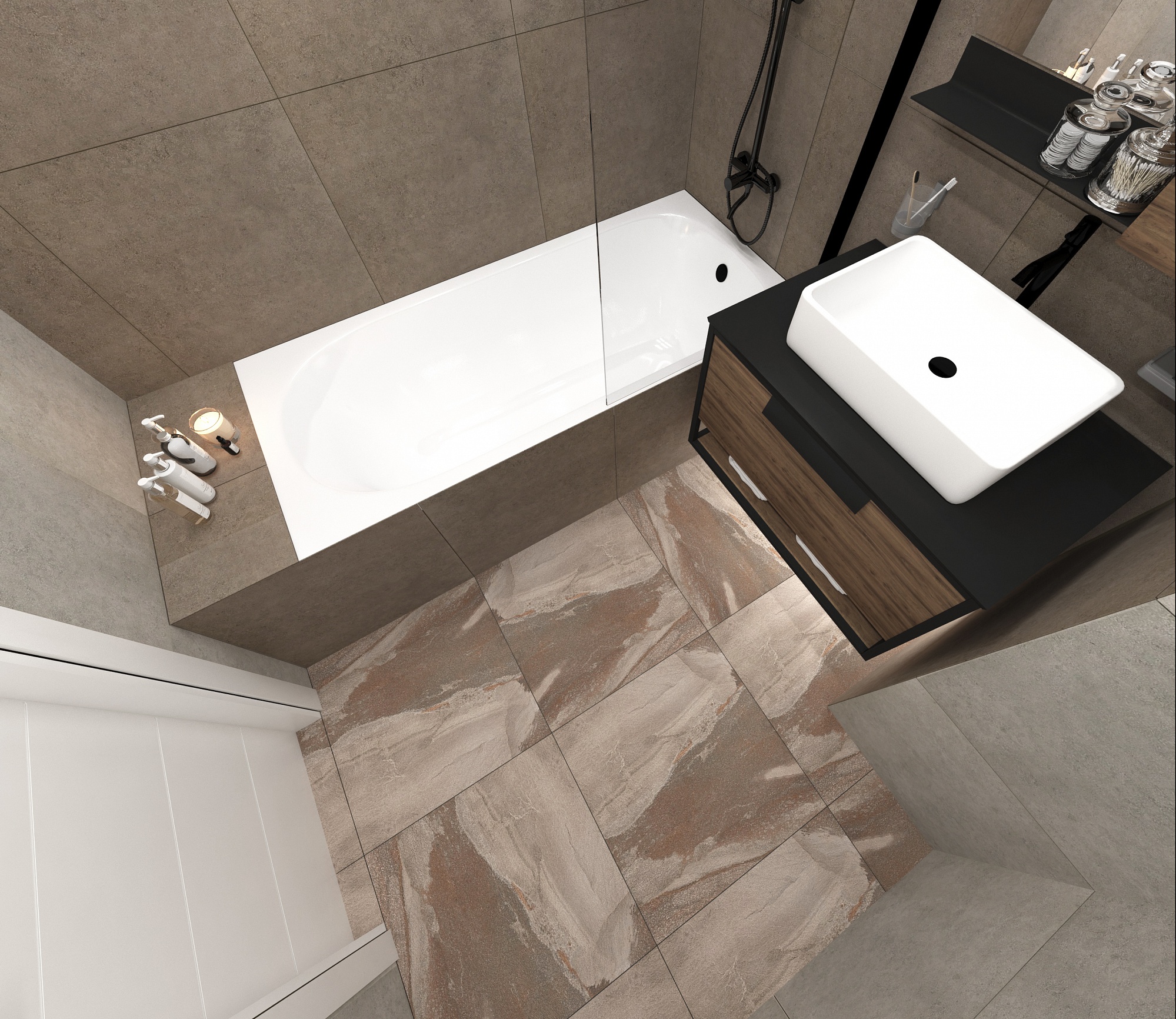 Ванная в стиле Лофт в коричневом цвете