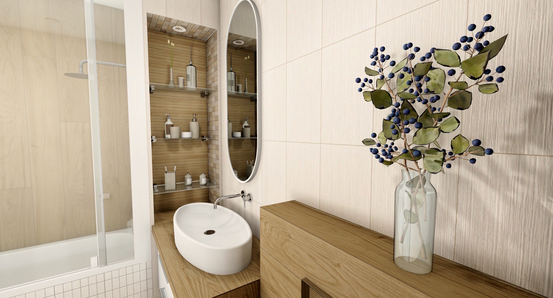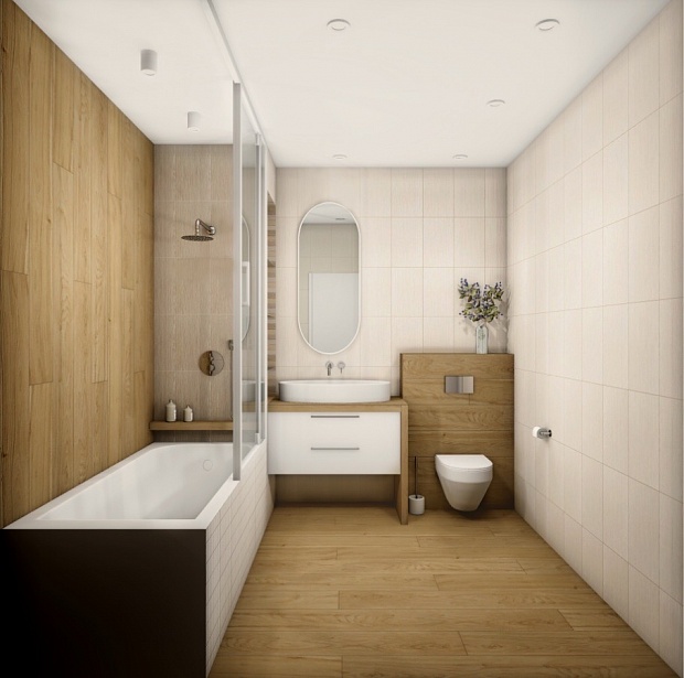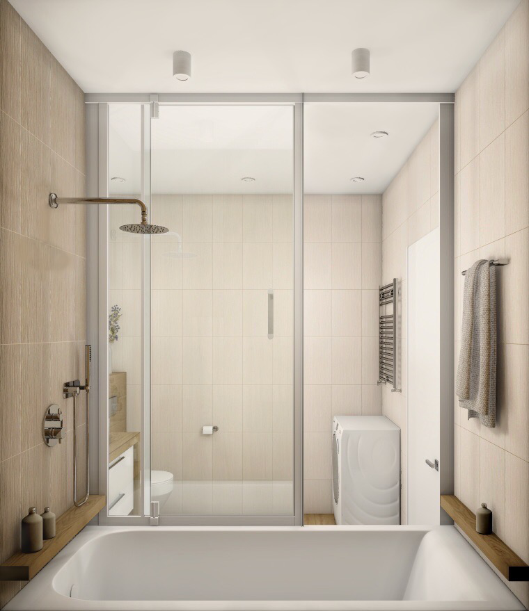 Совмещённый санузел в стиле Современный в бежевом цвете