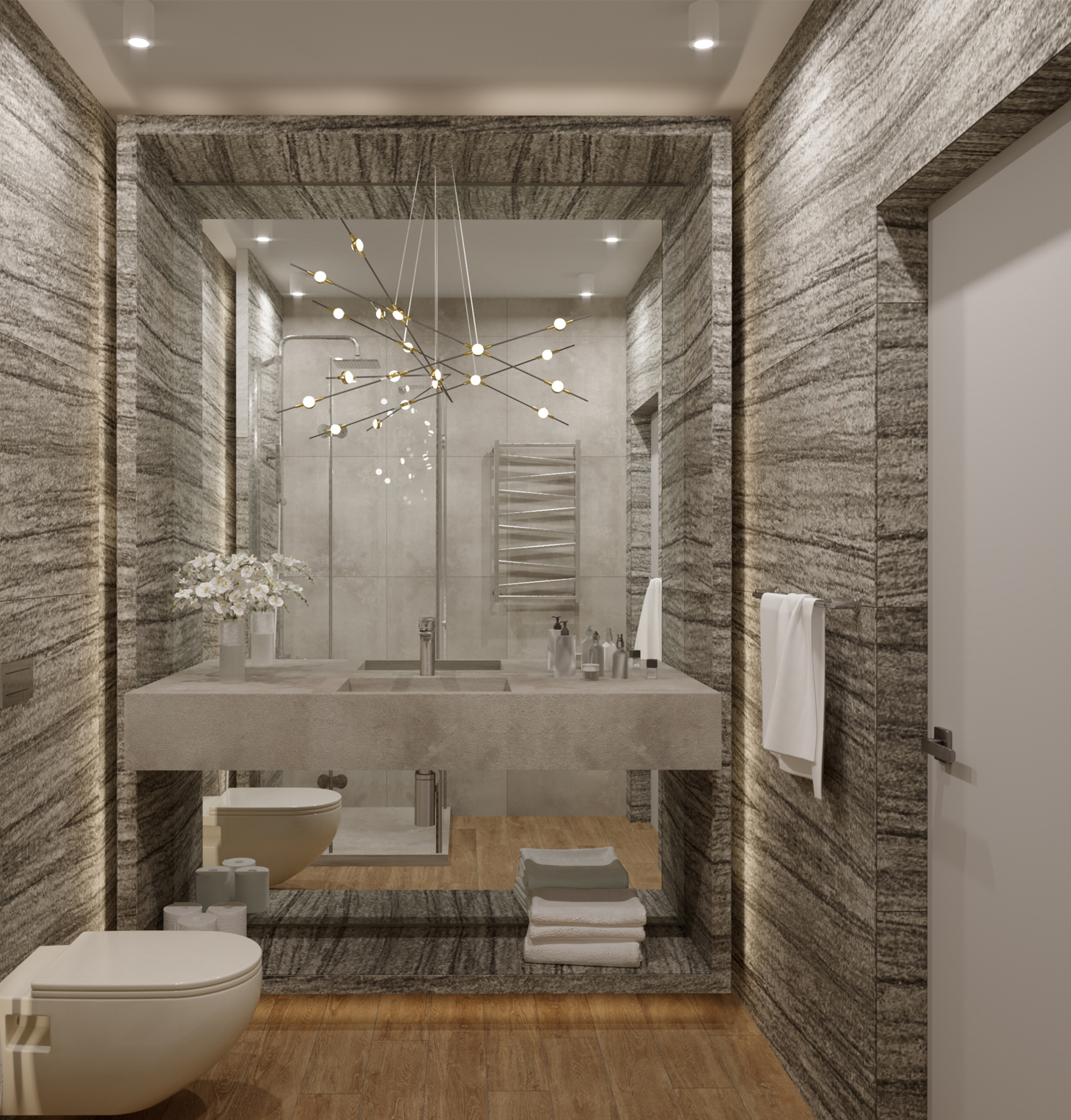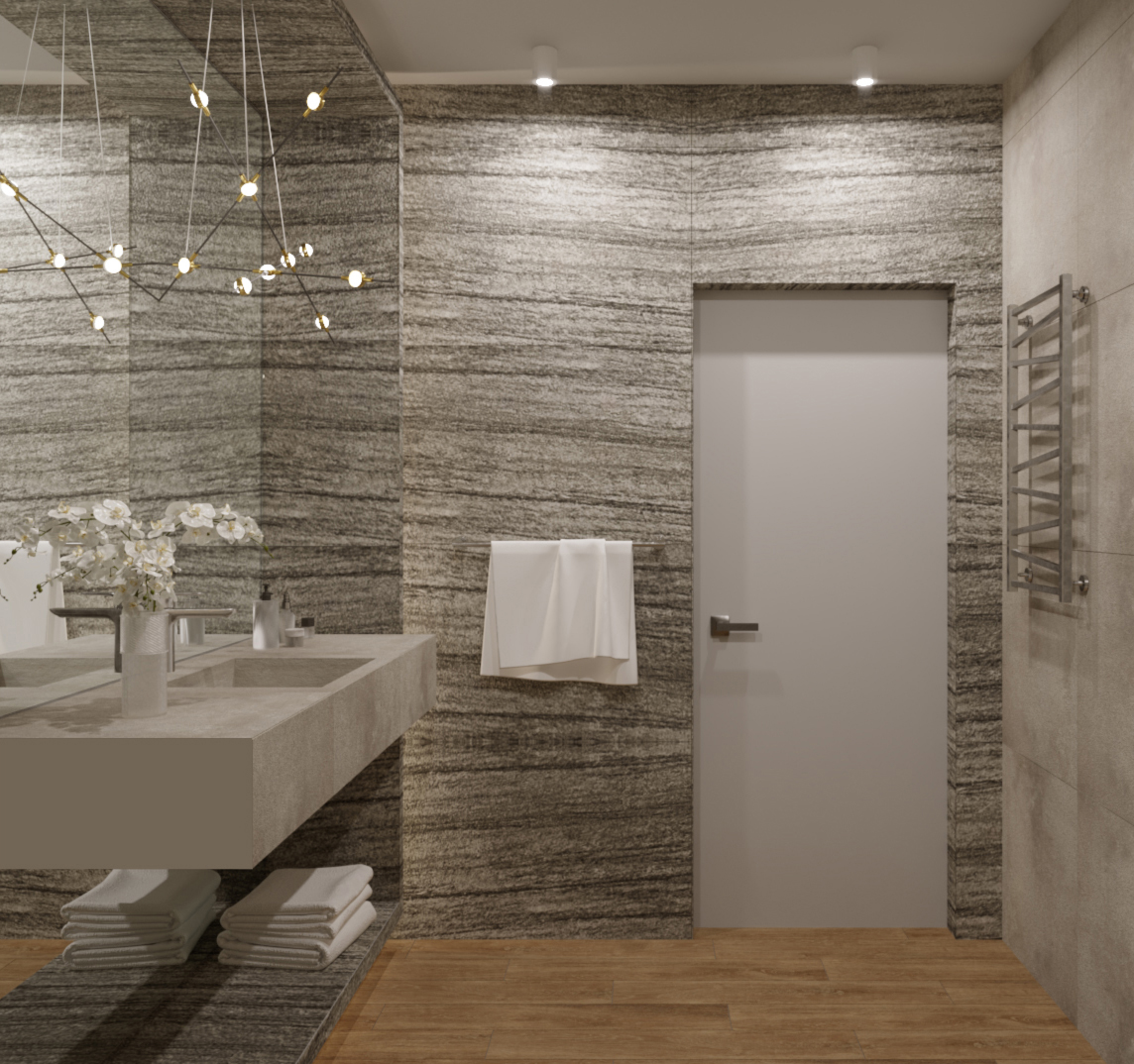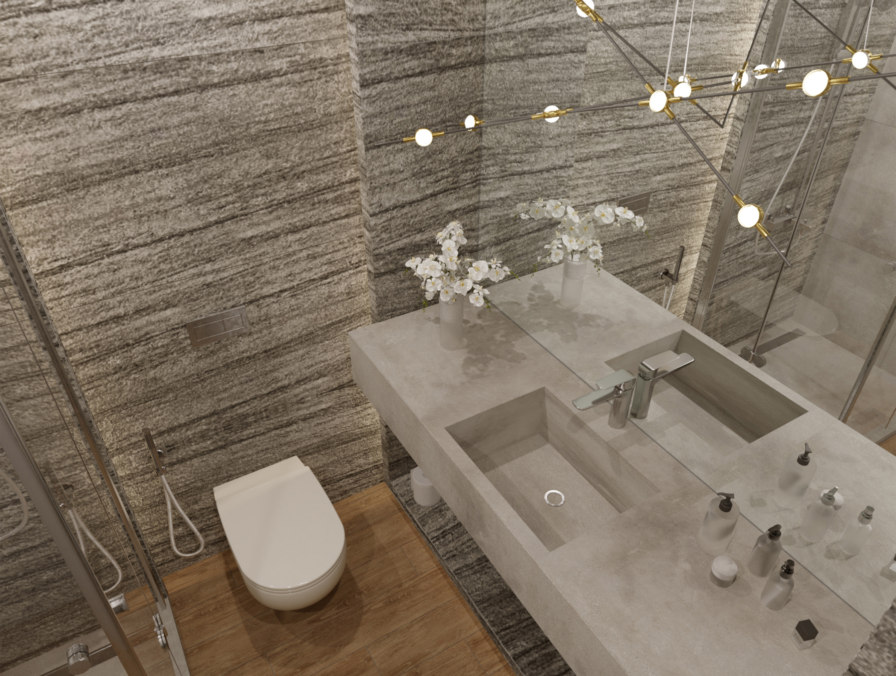Совмещённый санузел в стиле Минимализм в сером цвете