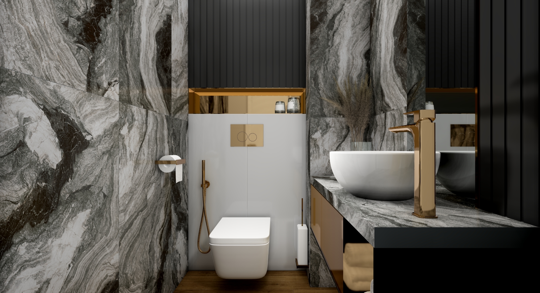 Санузел в стиле Неоклассика в коричневом цвете