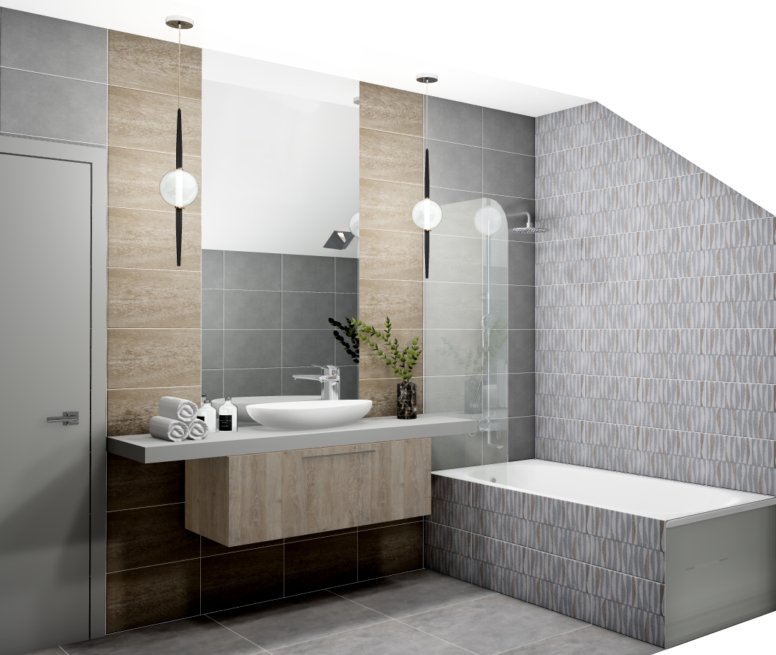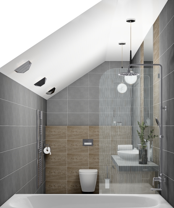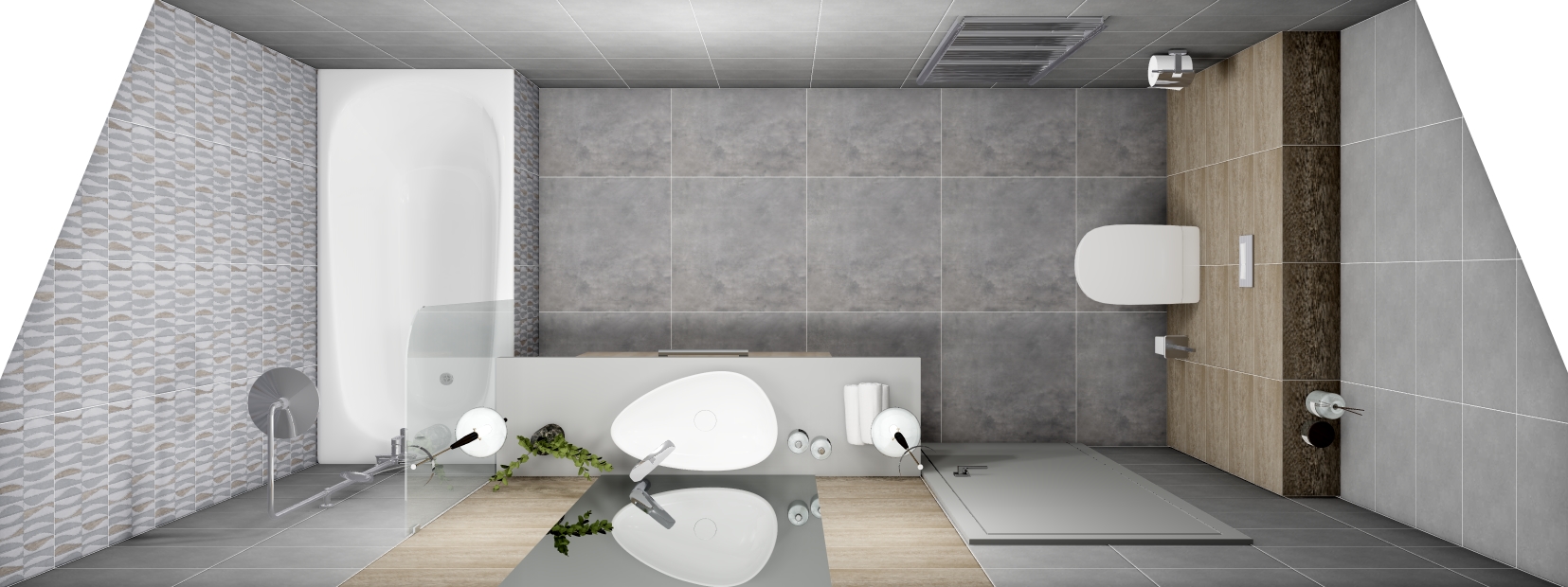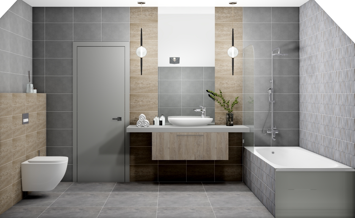 Совмещённый санузел в стиле Минимализм в сером цвете