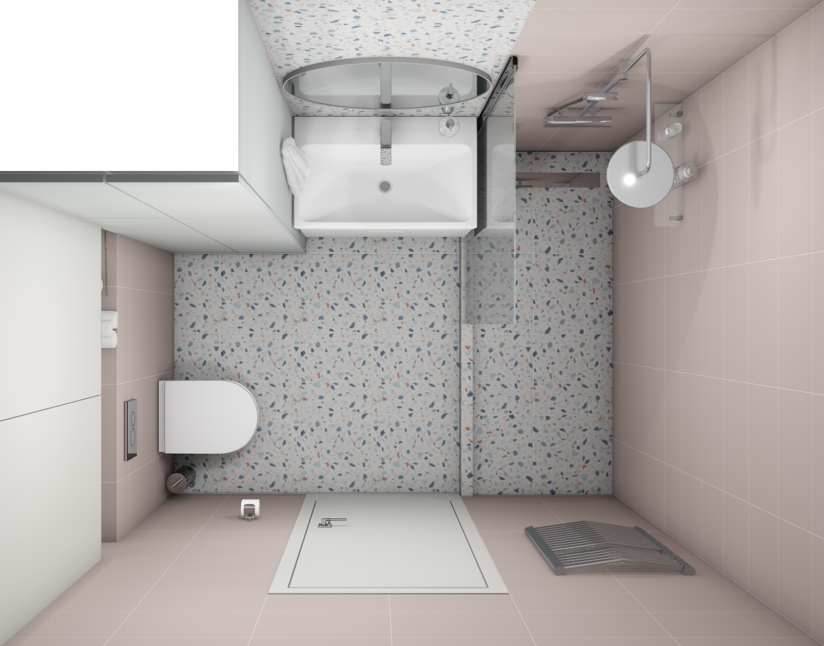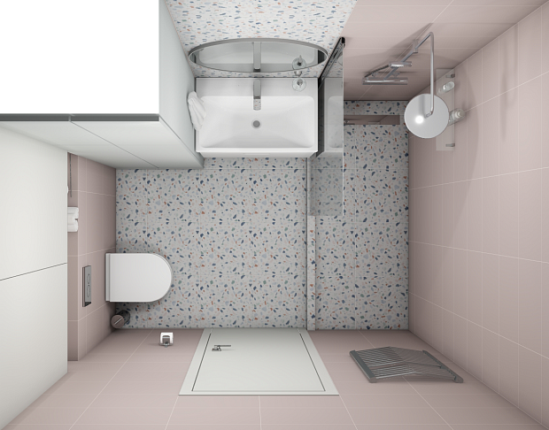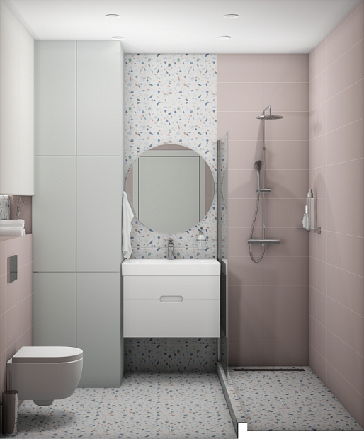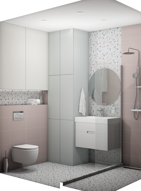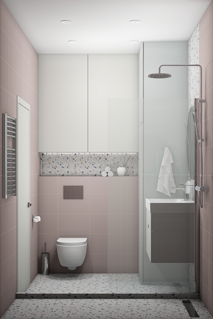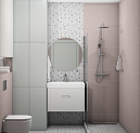 Совмещённый санузел в стиле Минимализм в розовым цвете