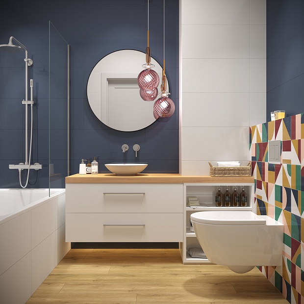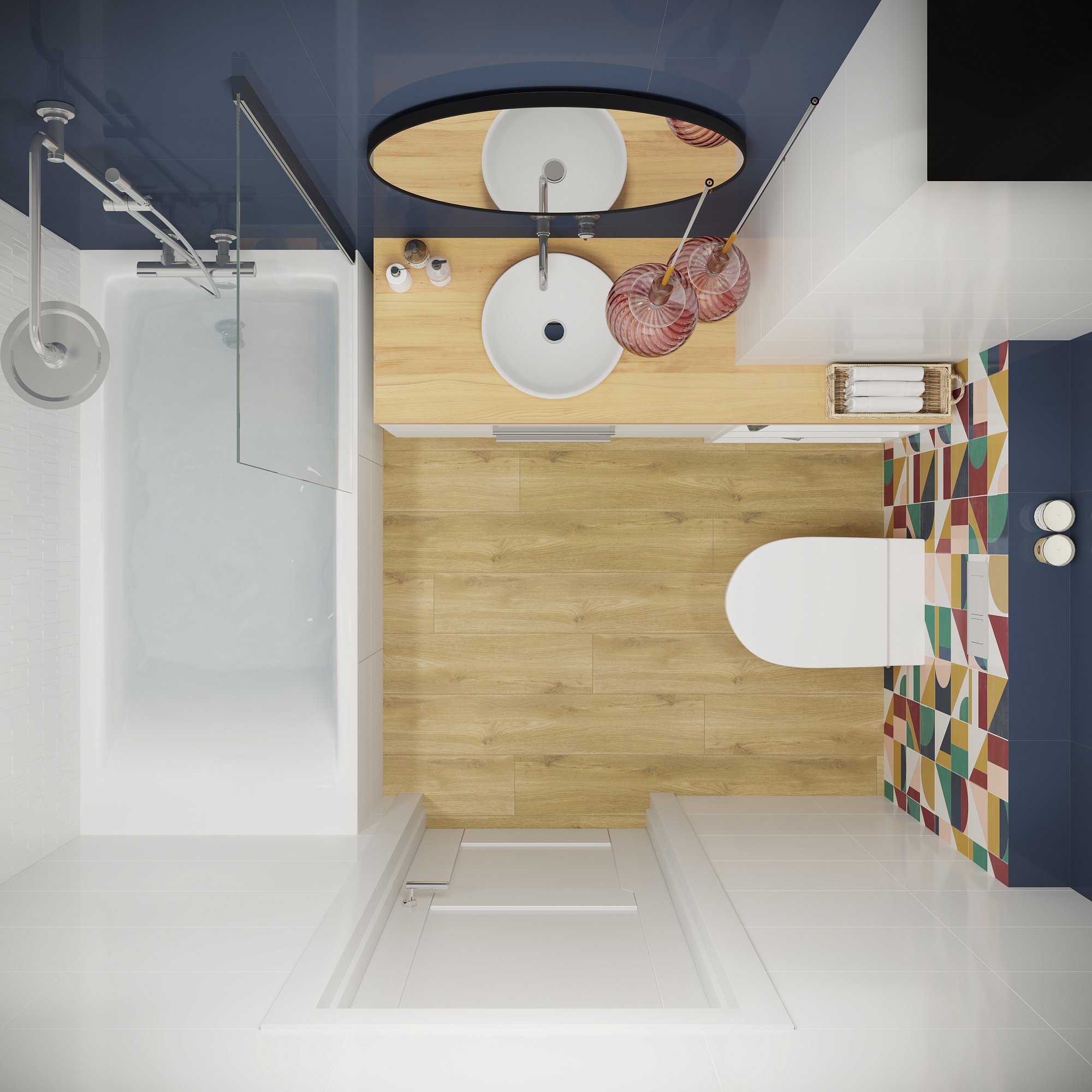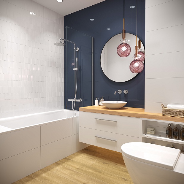 Совмещённый санузел в стиле Минимализм в белом цвете