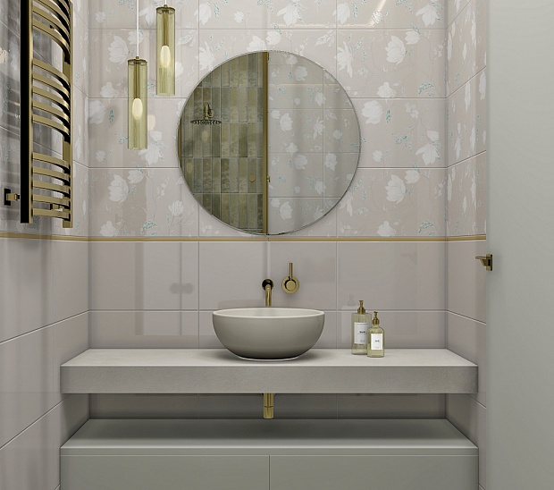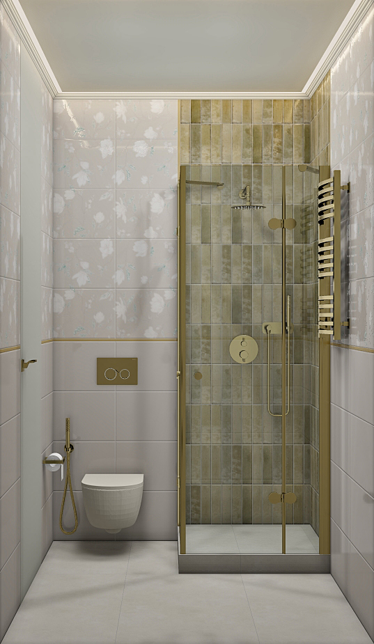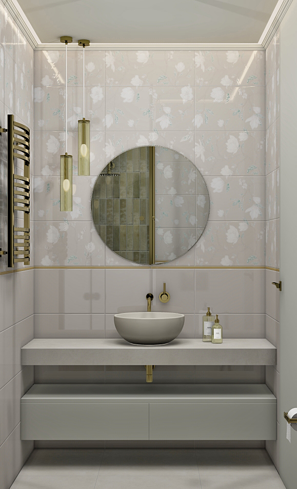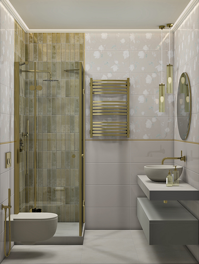 Совмещённый санузел в стиле Современный в бежевом цвете