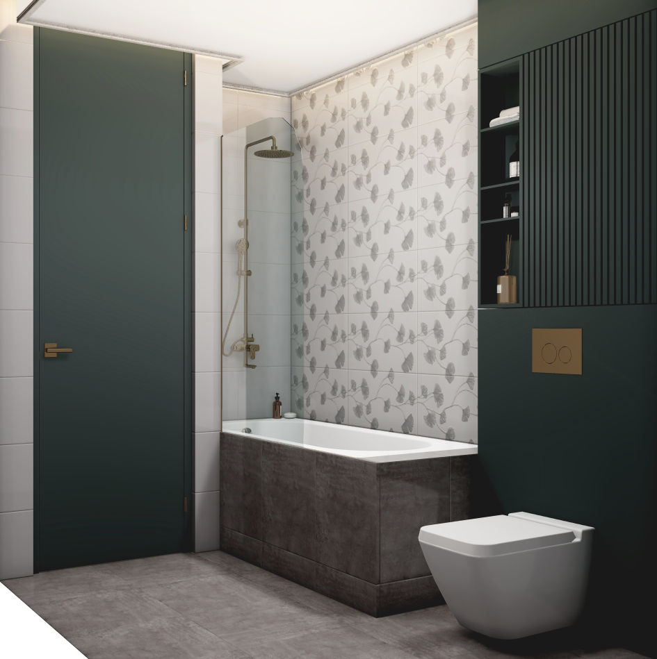 Совмещённый санузел в стиле Современный в зеленом цвете
