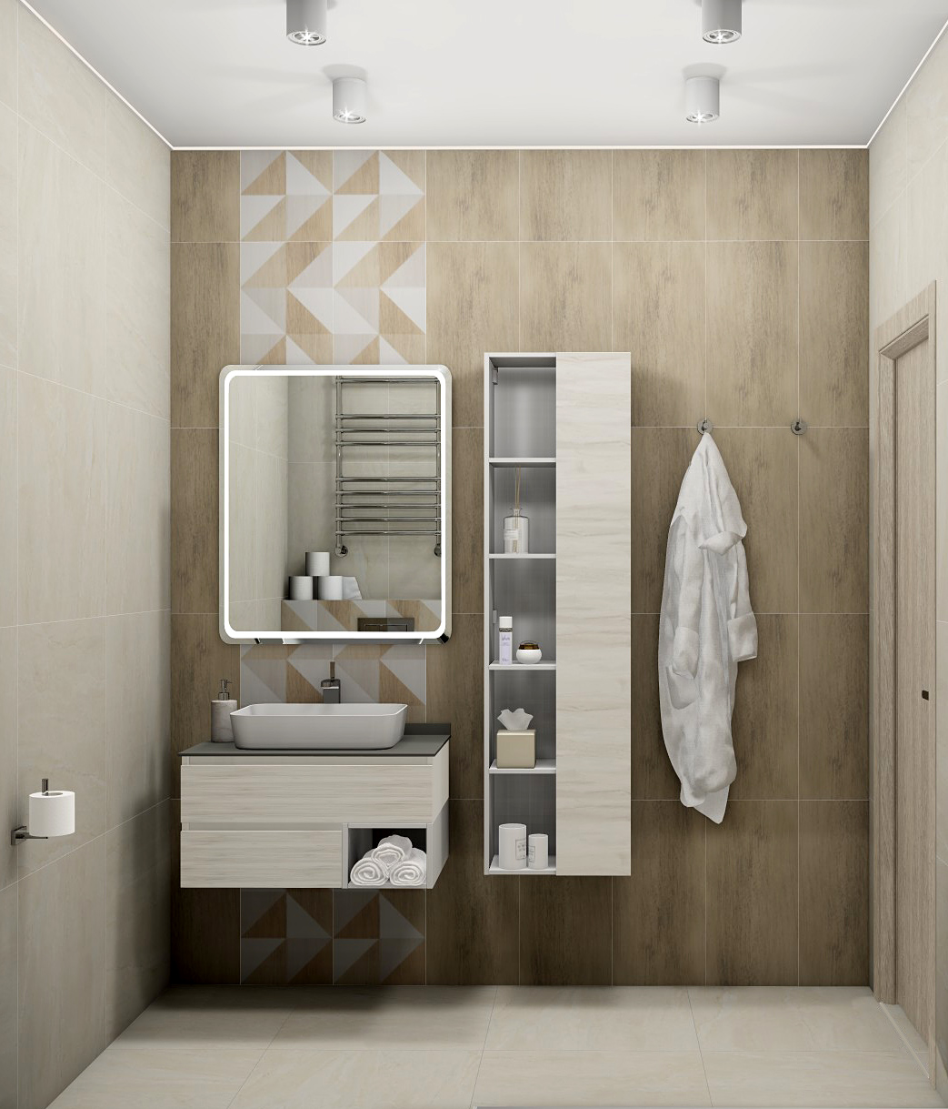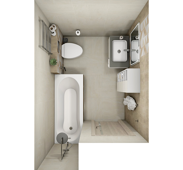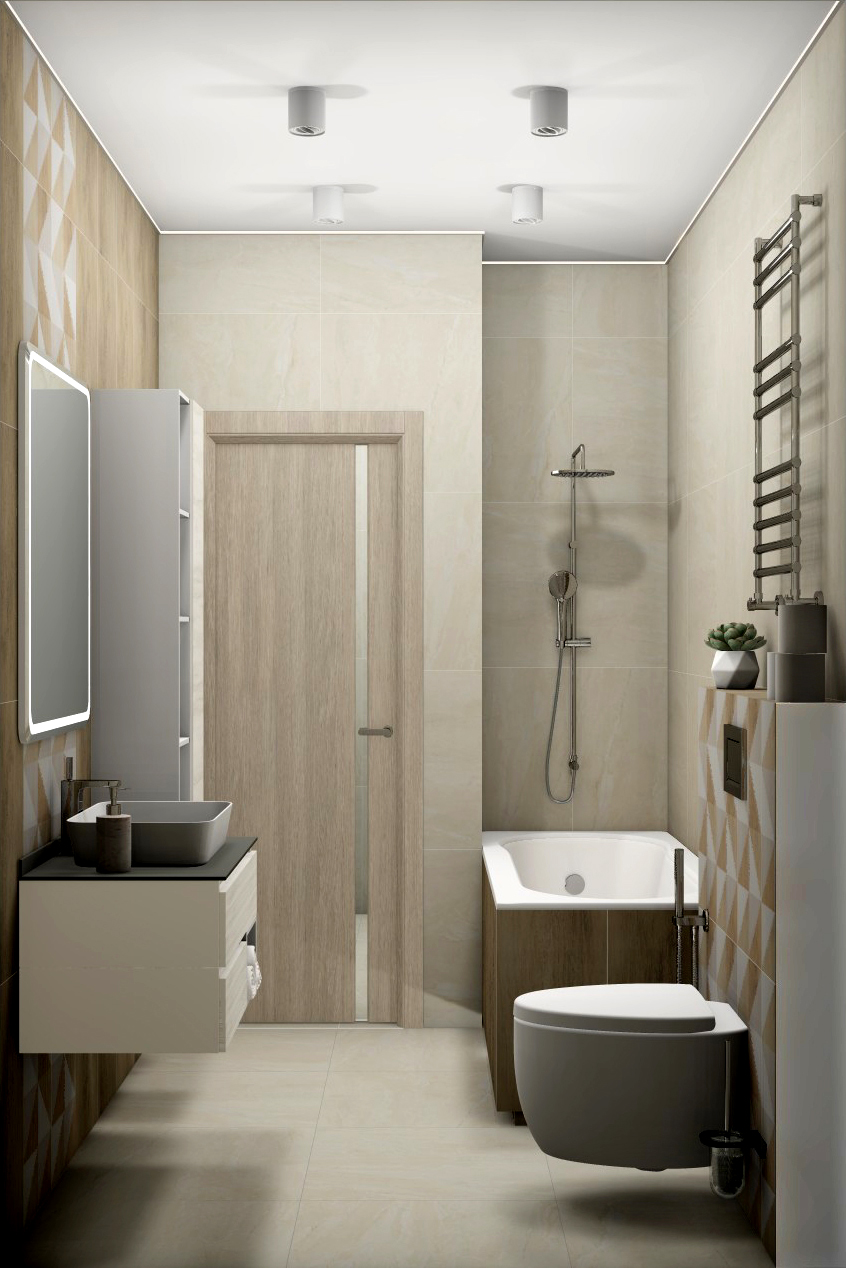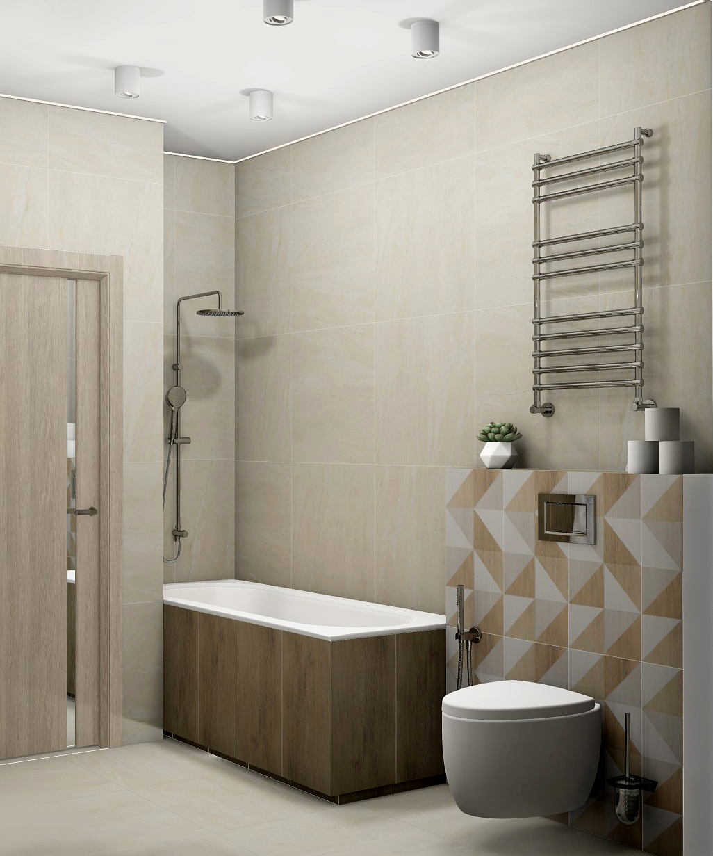 Совмещённый санузел в стиле Минимализм в бежевом цвете