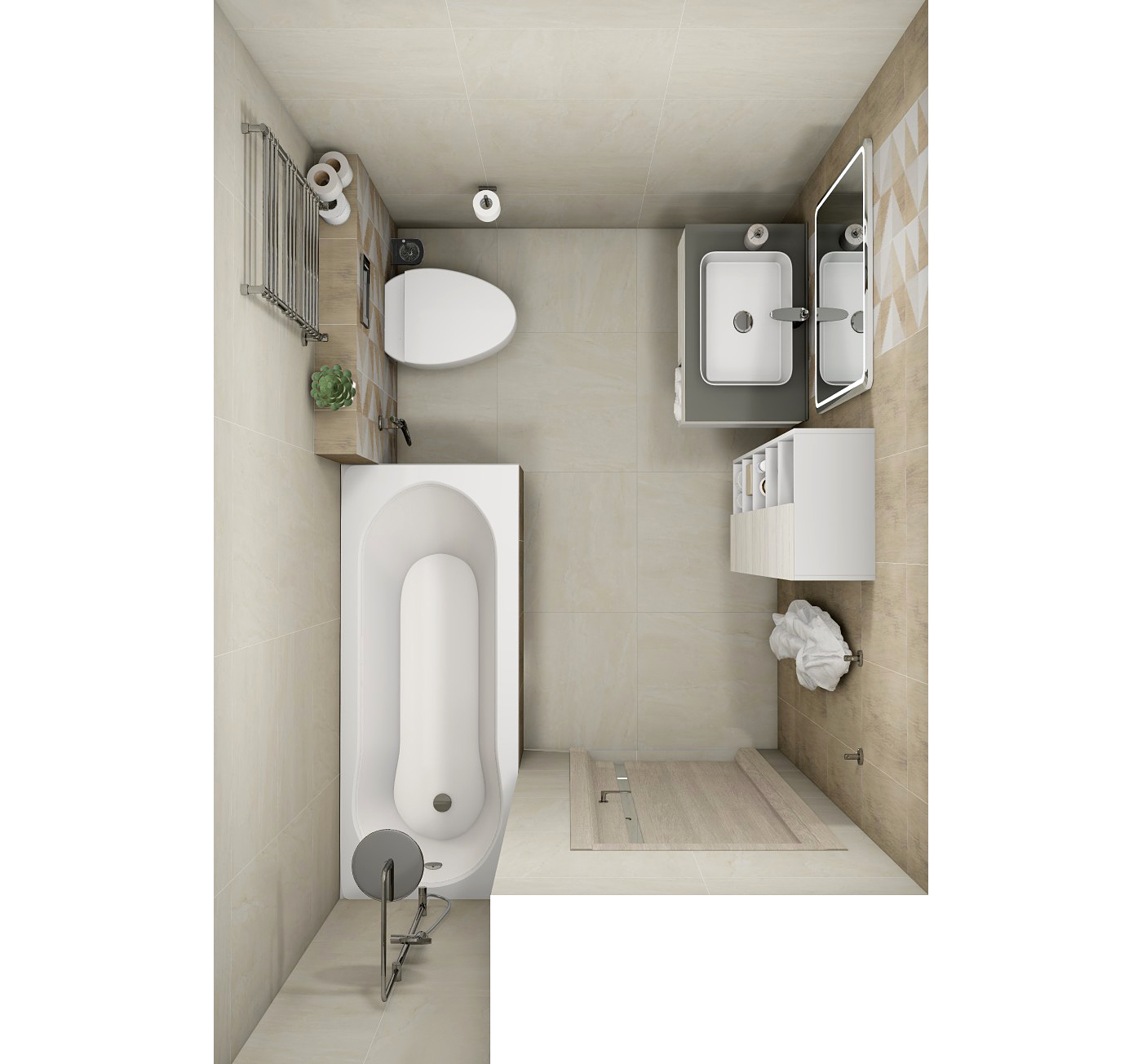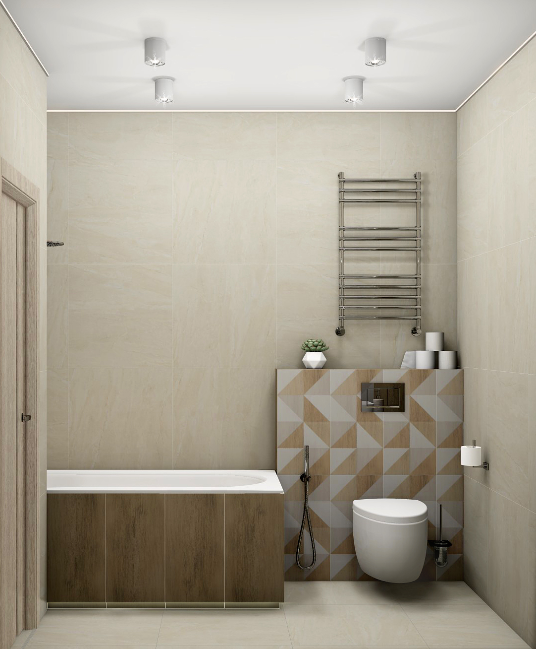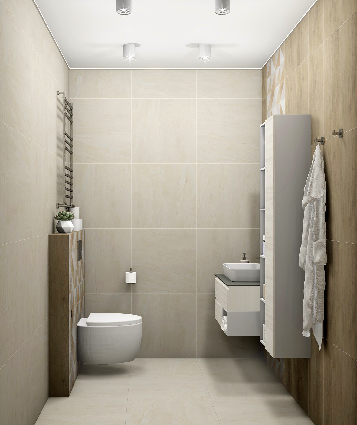 Совмещённый санузел в стиле Минимализм в бежевом цвете