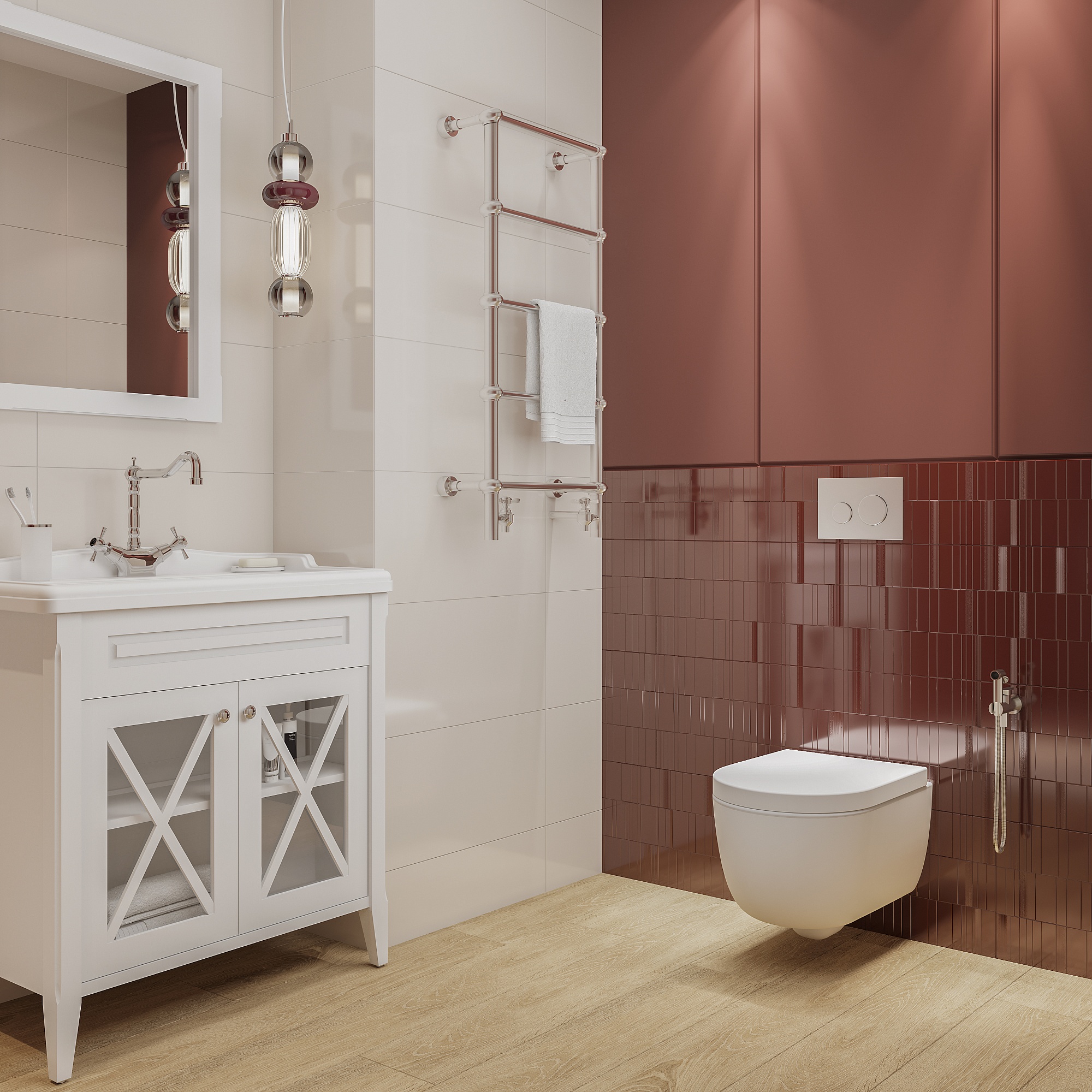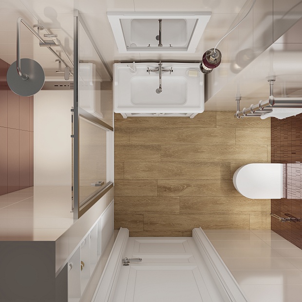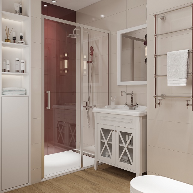 Совмещённый санузел в стиле Эклектика в бежевом цвете