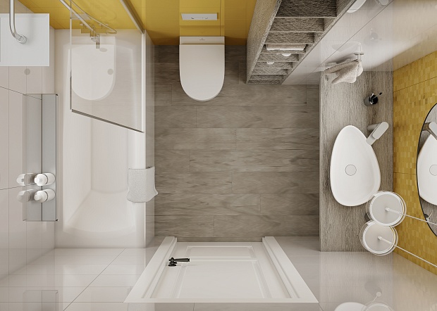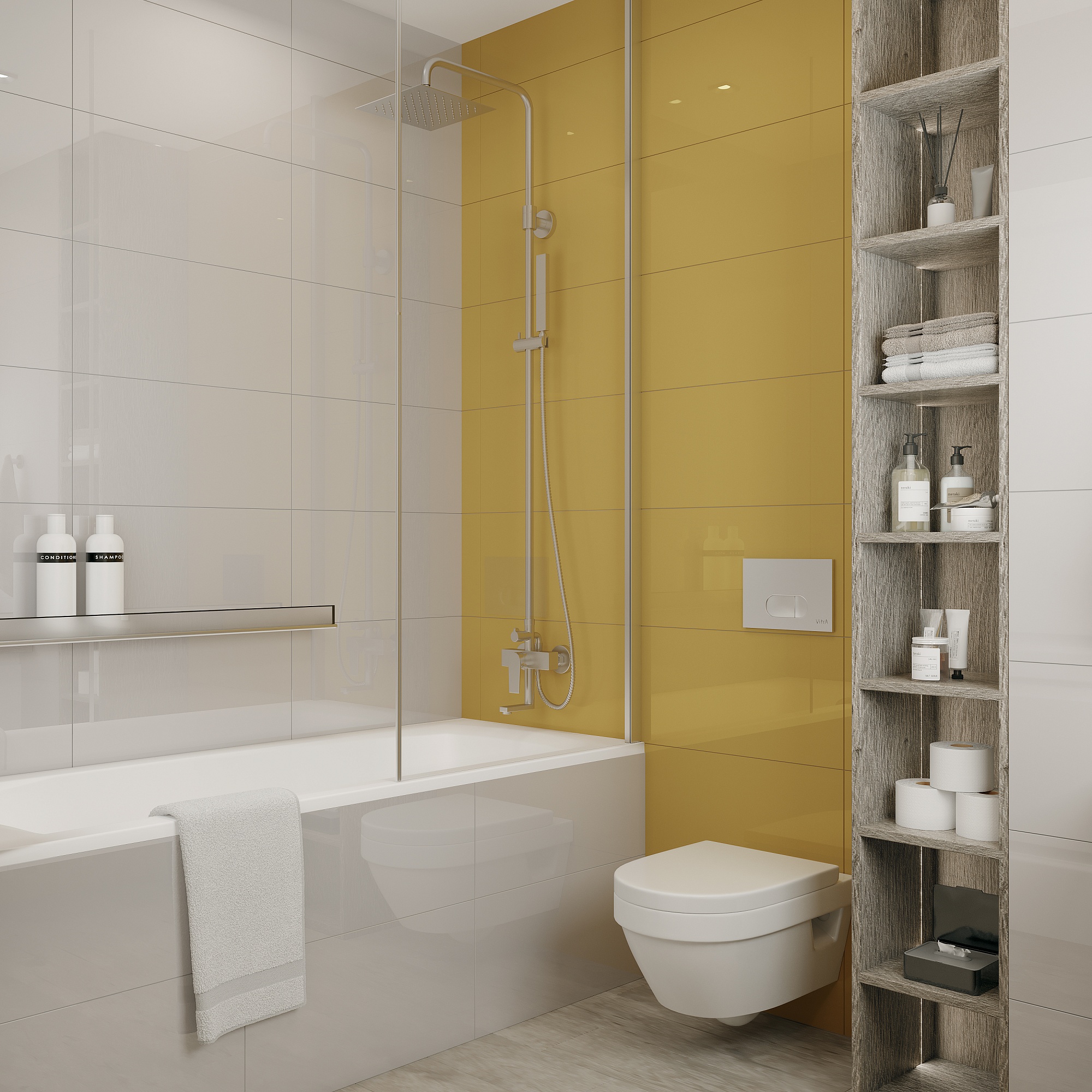 Совмещённый санузел в стиле Минимализм в белом цвете