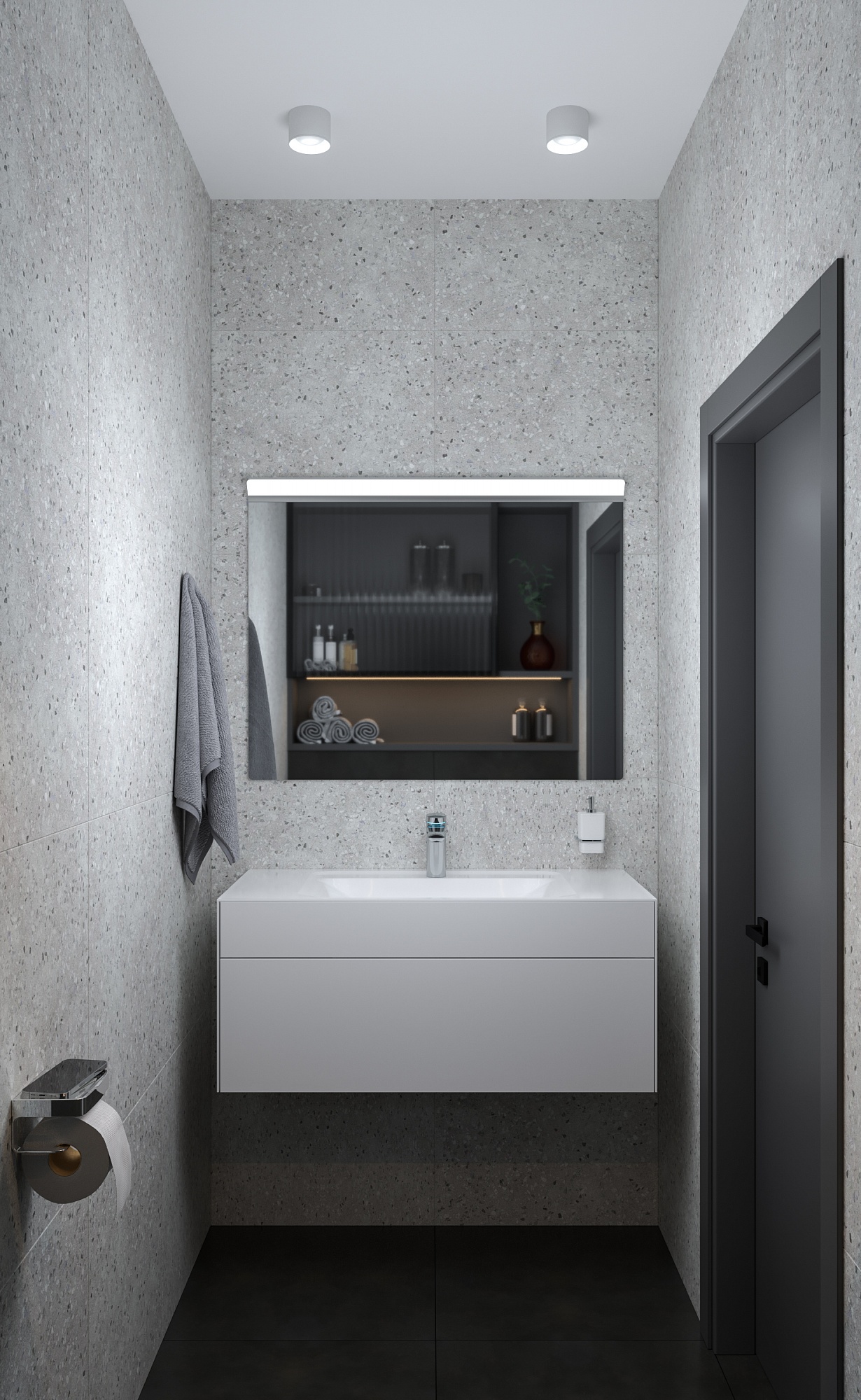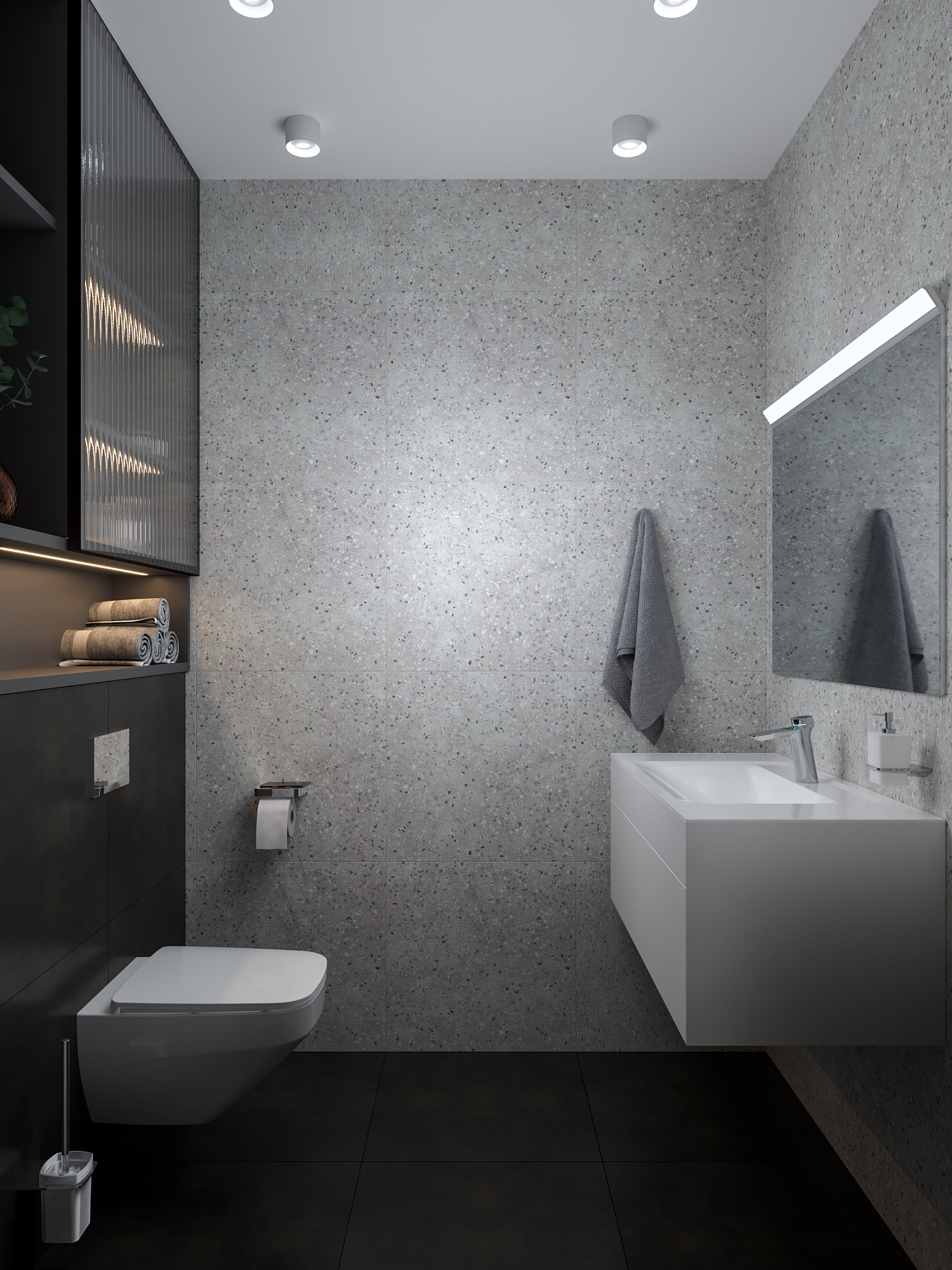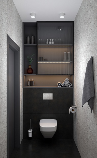 Санузел в стиле Минимализм в сером цвете