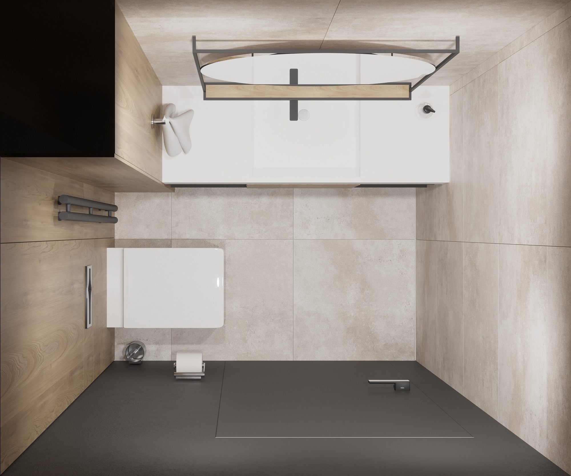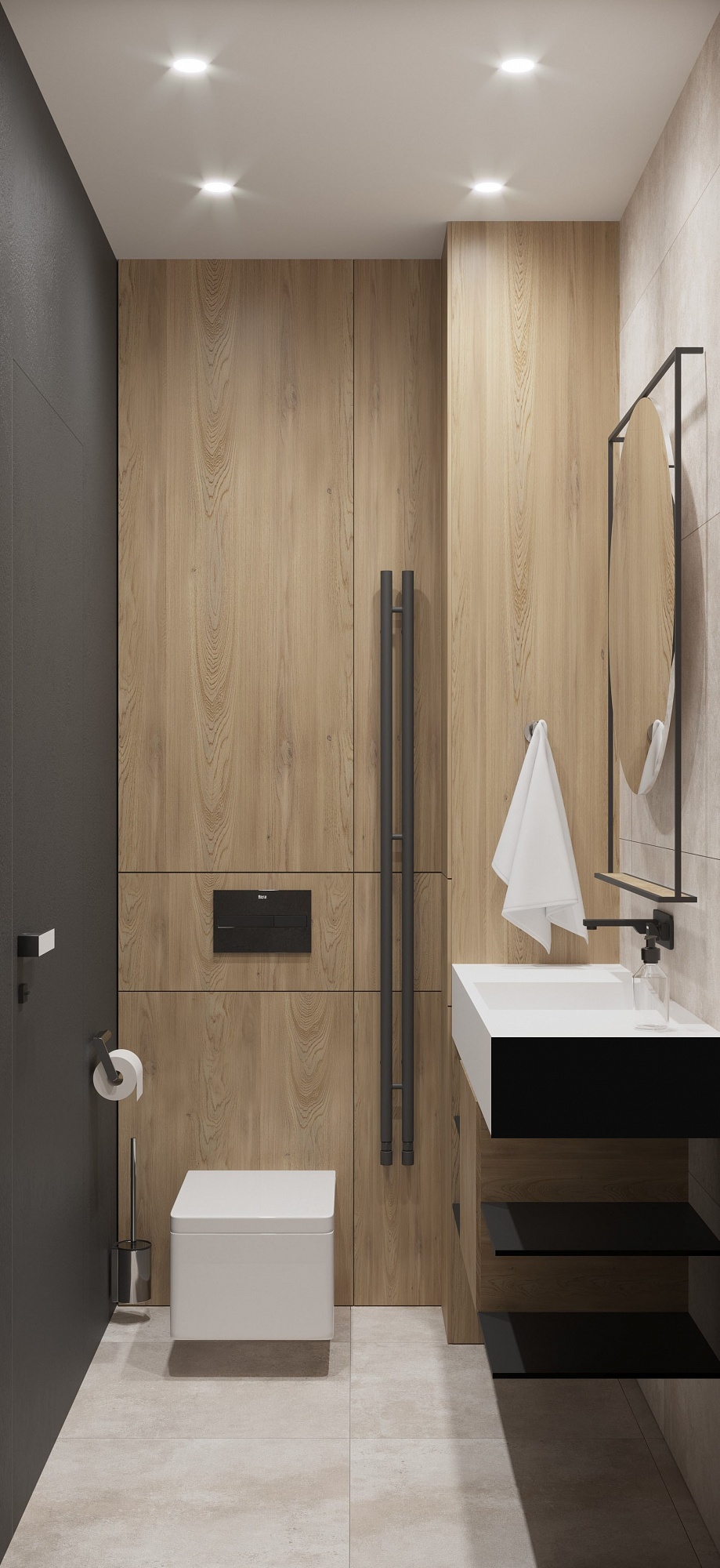 Санузел в стиле Минимализм в сером цвете