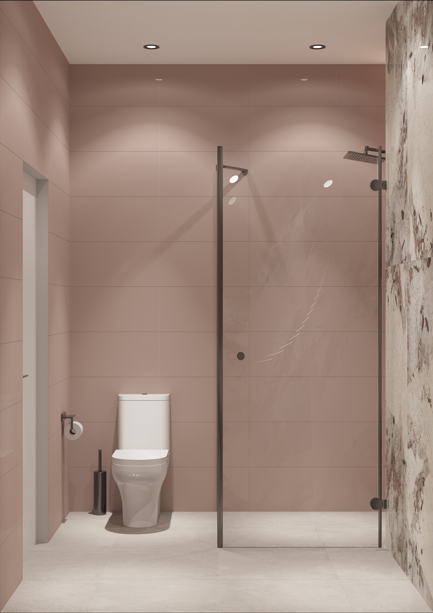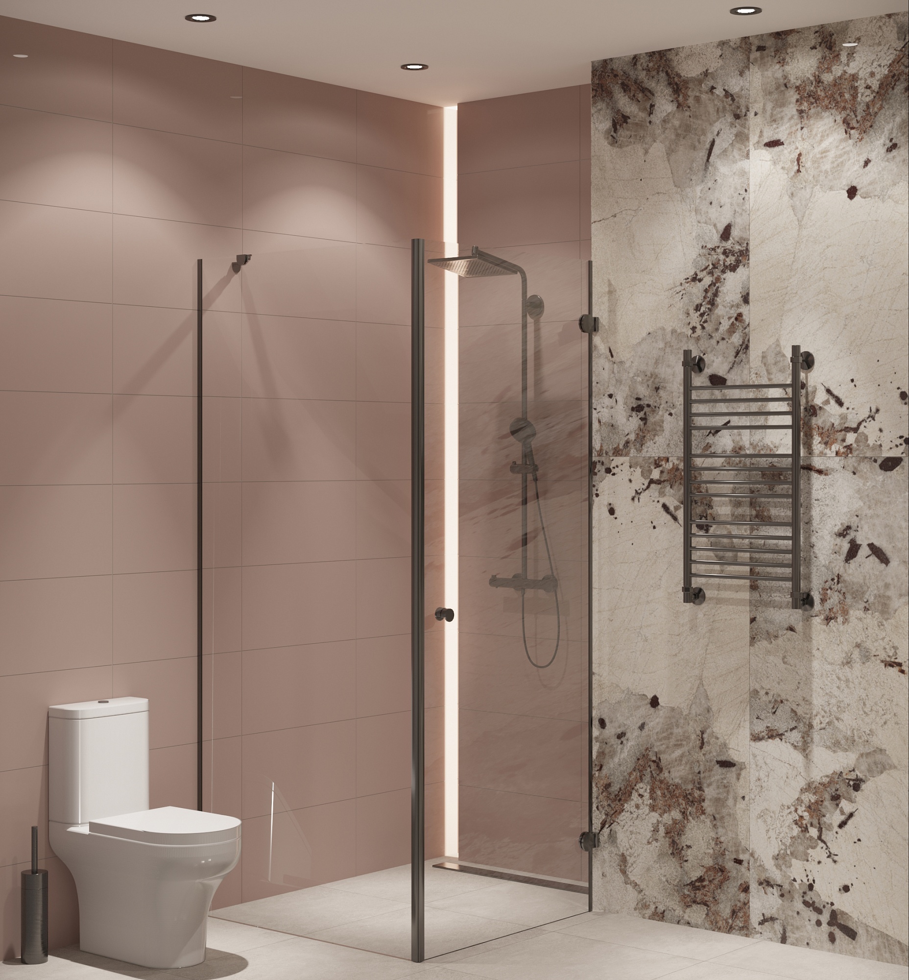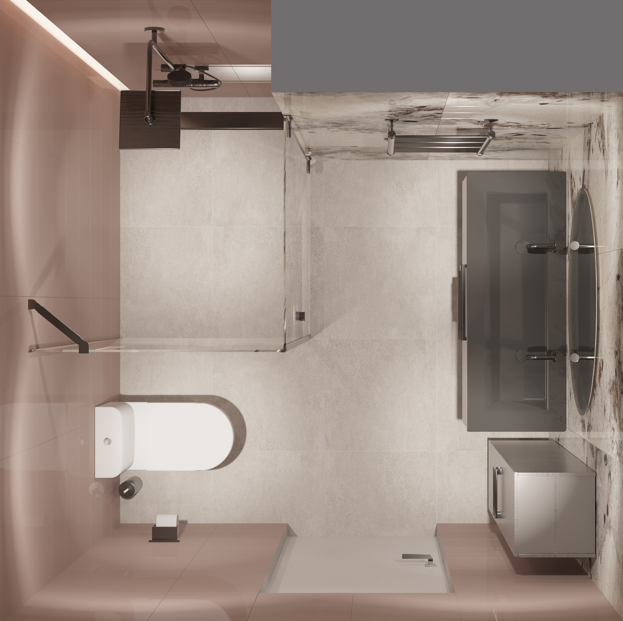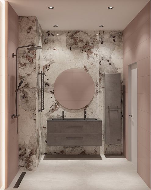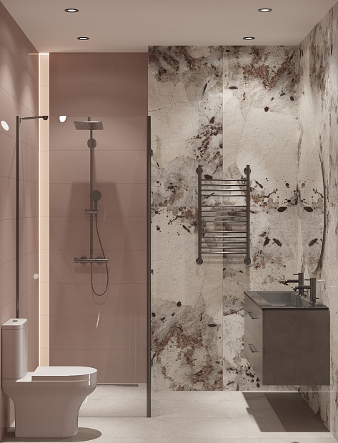 Совмещённый санузел в стиле Современный в розовым цвете