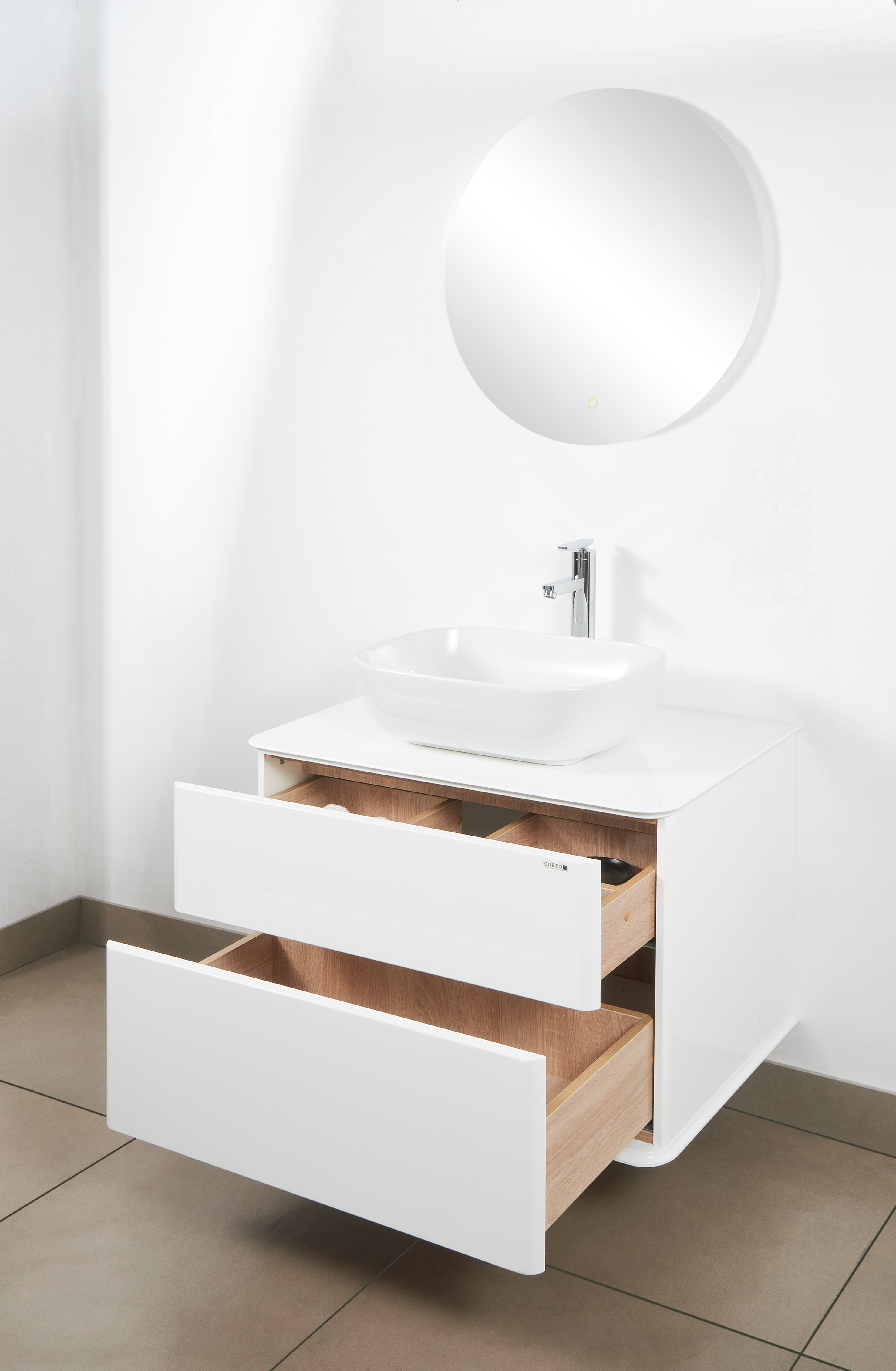 Тумба с раковиной Creto Stella 60 см белый глянец, 16-CRE35/60/