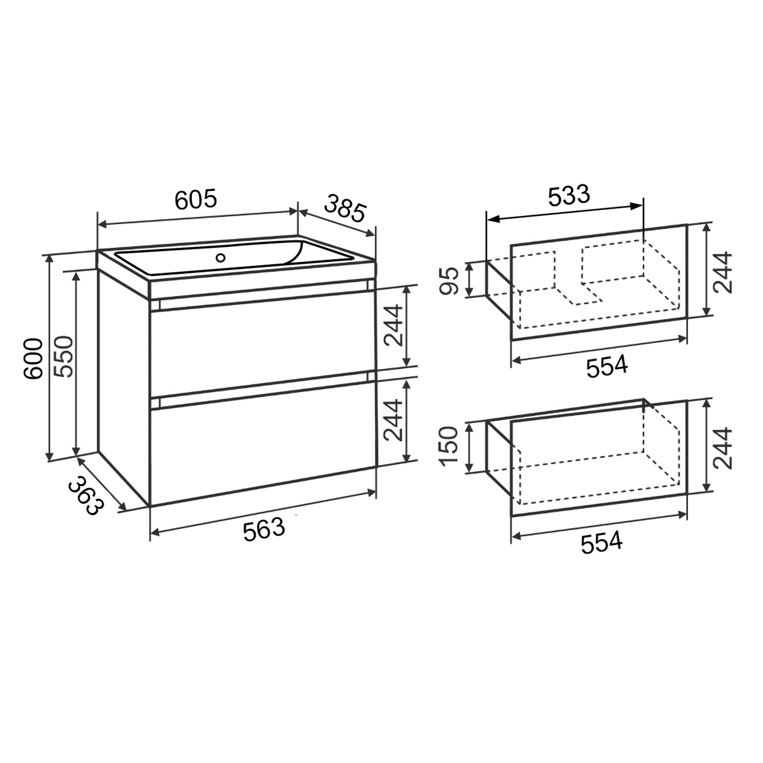 Тумба с раковиной Creto Style 60 см белая глянцевая, 16-2060W