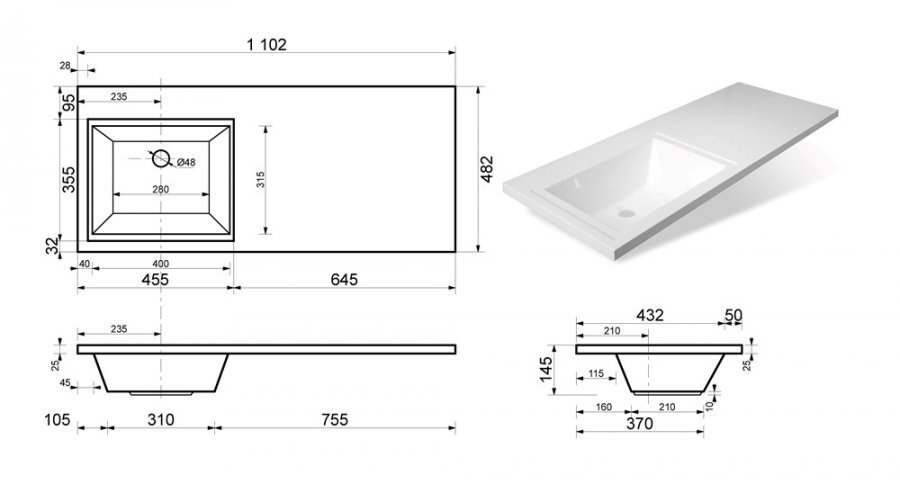 Тумба с раковиной напольная Creto Cafor White 110 левосторонняя