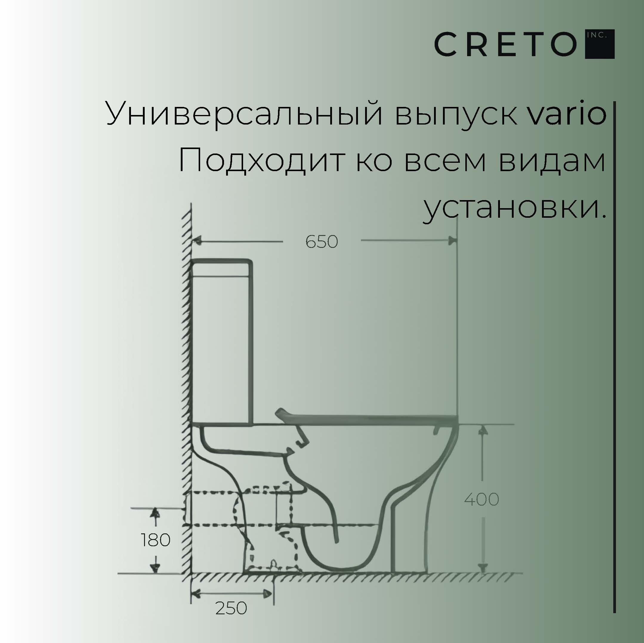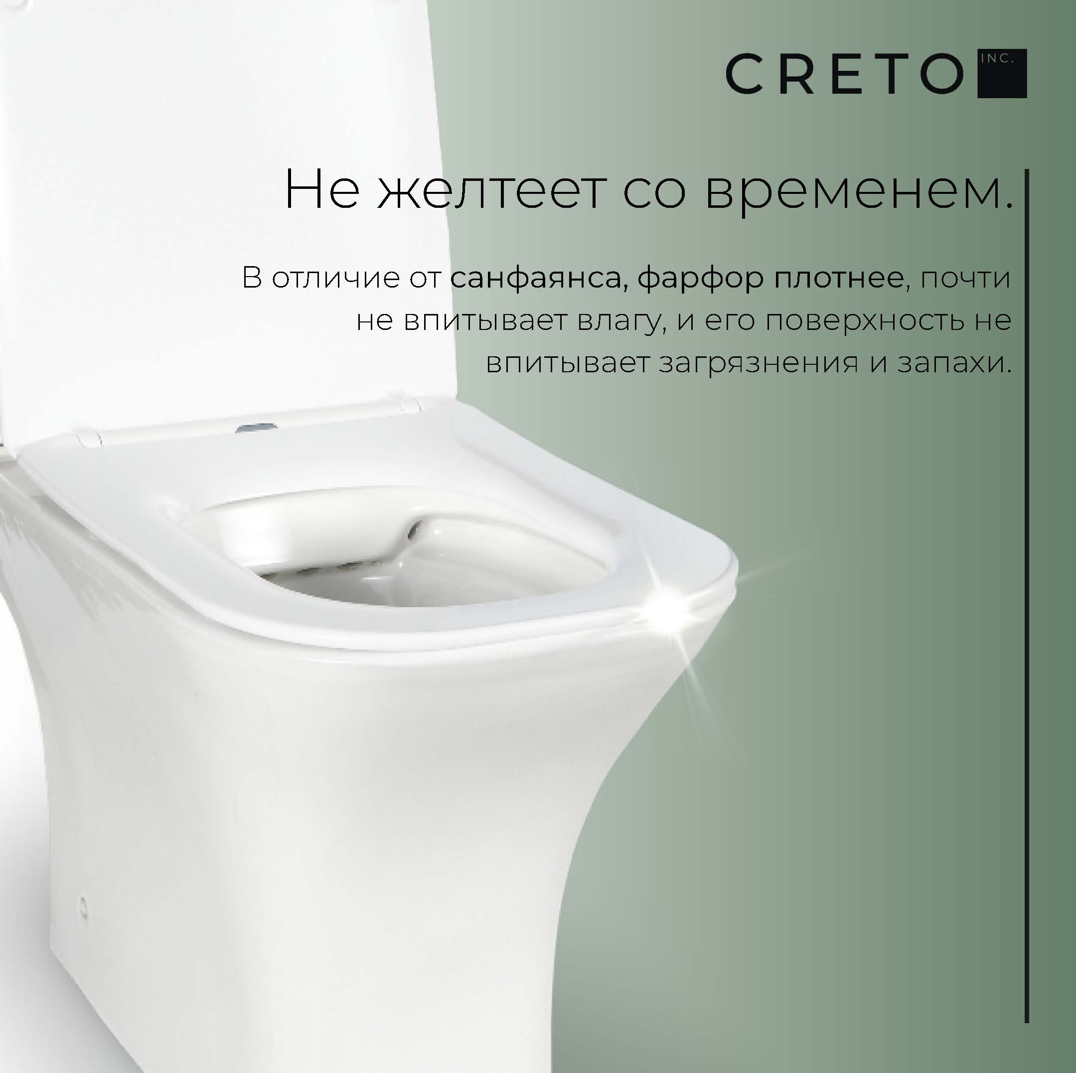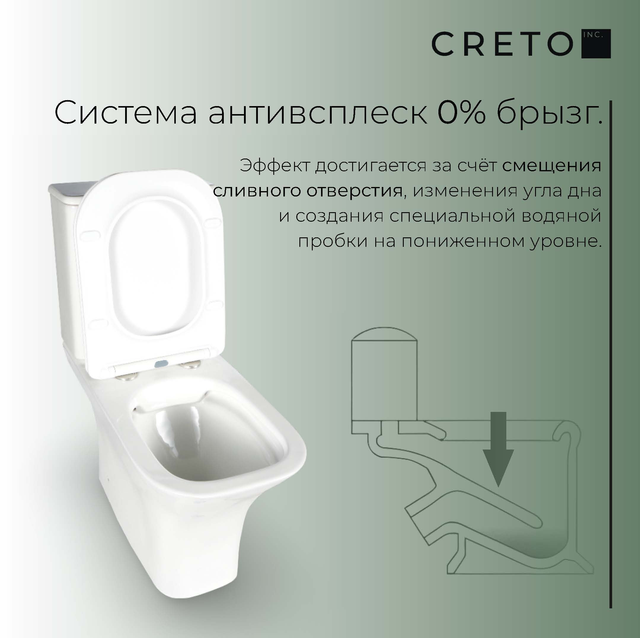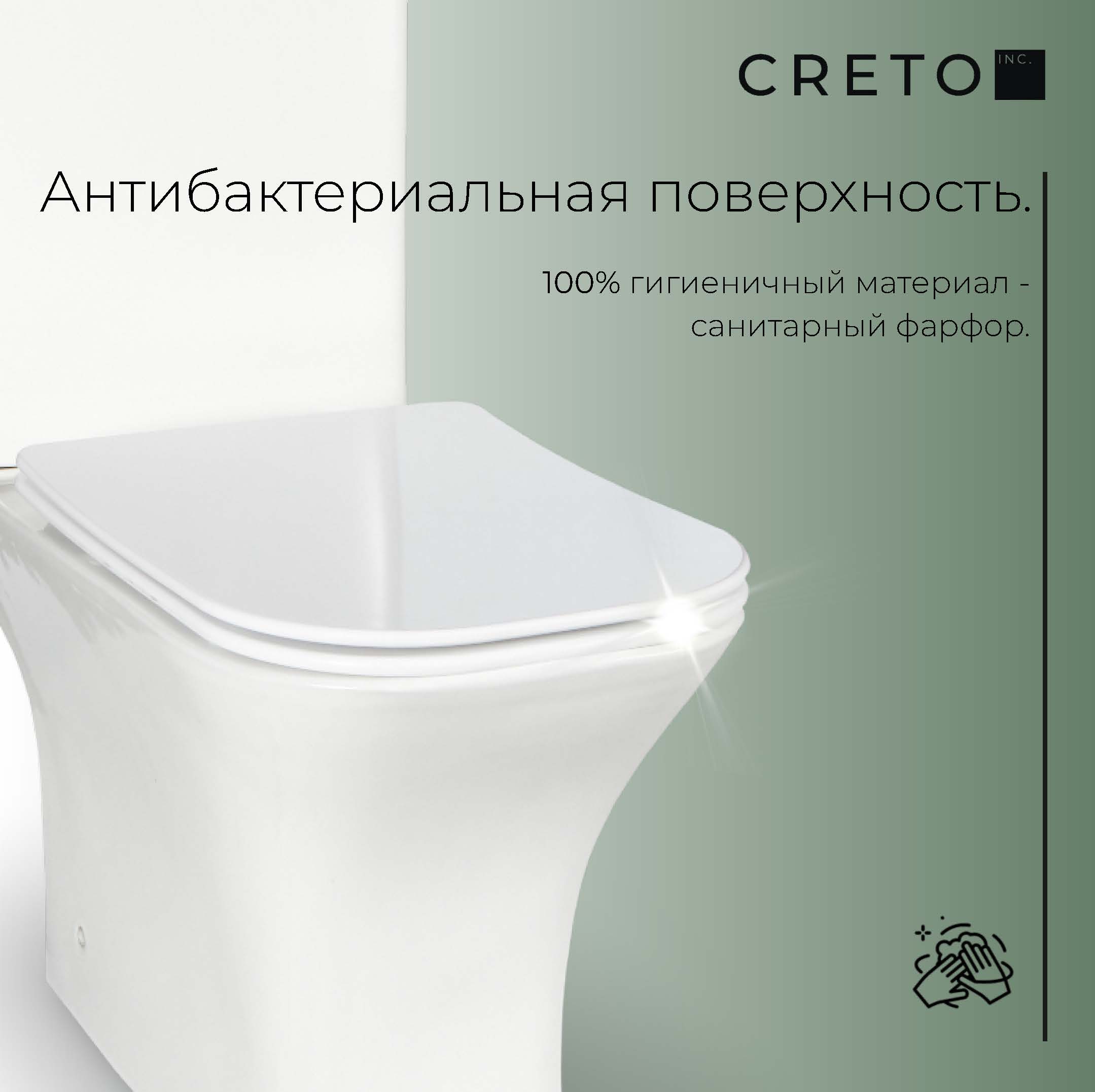 Унитаз-компакт безободковый Creto Cer C2 1002-002Cer-C2W с быстросъёмной крышкой-сиденьем микролифт Slim