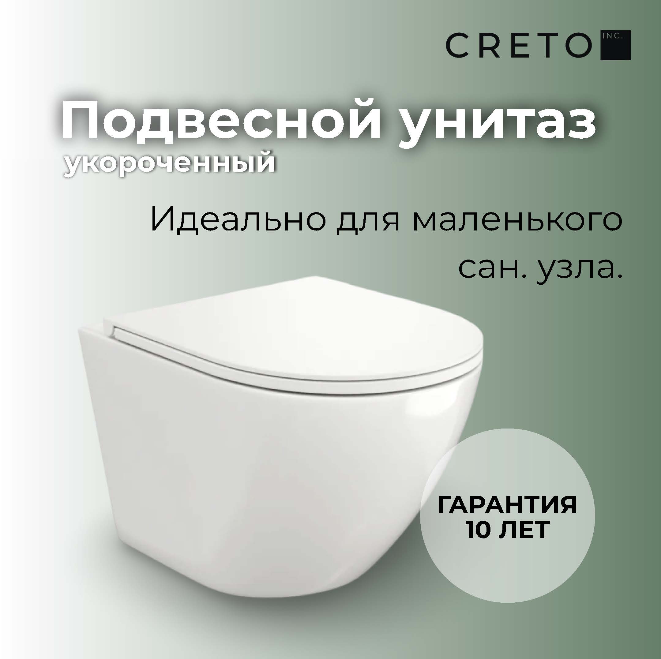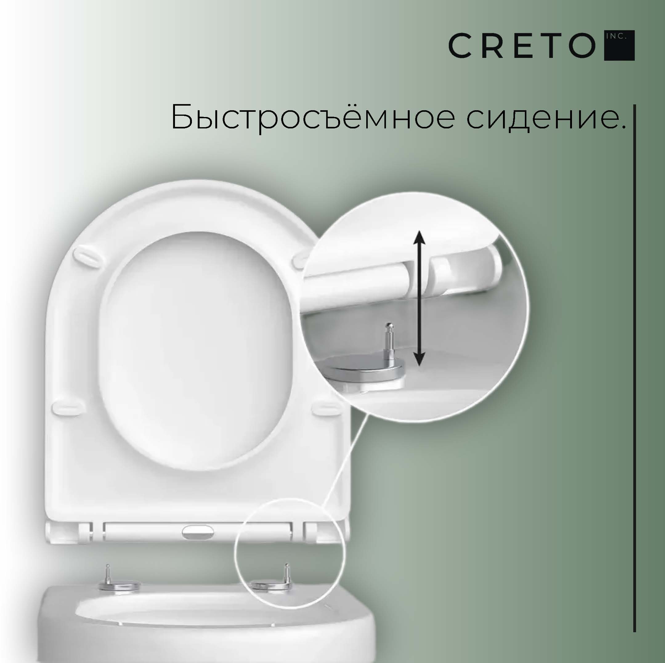 Унитаз подвесной безободковый Creto Cer C5 1005-005Cer-С5W с крышкой-сиденьем микролифт, белый